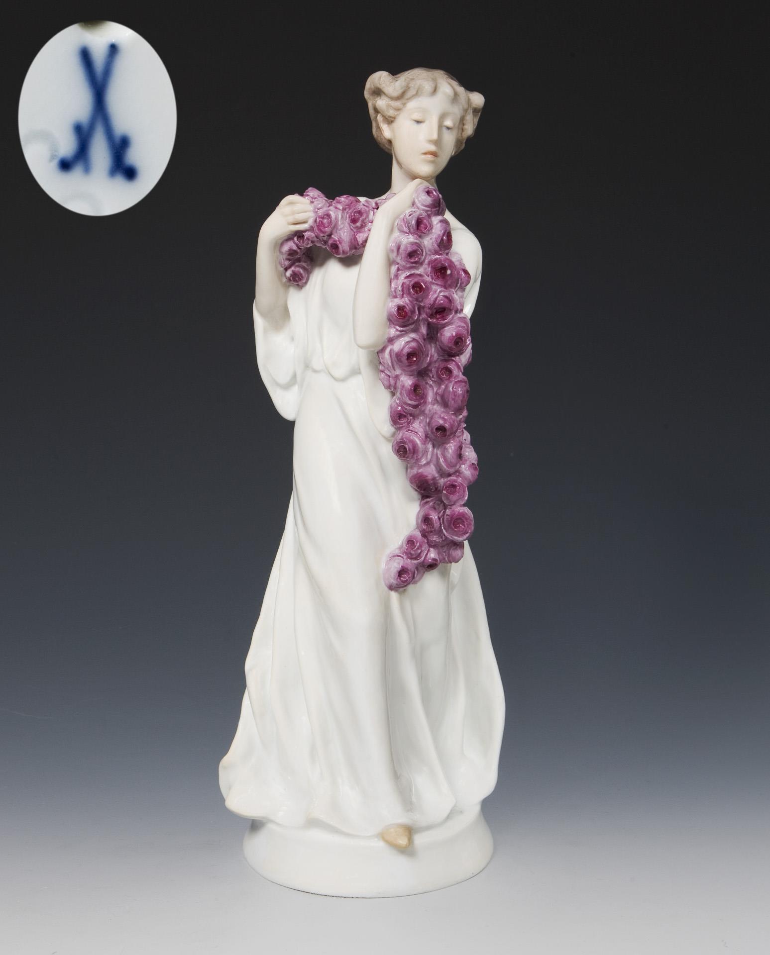 Rare Art Nouveau figurine: Girl with rose garland. Meissen.