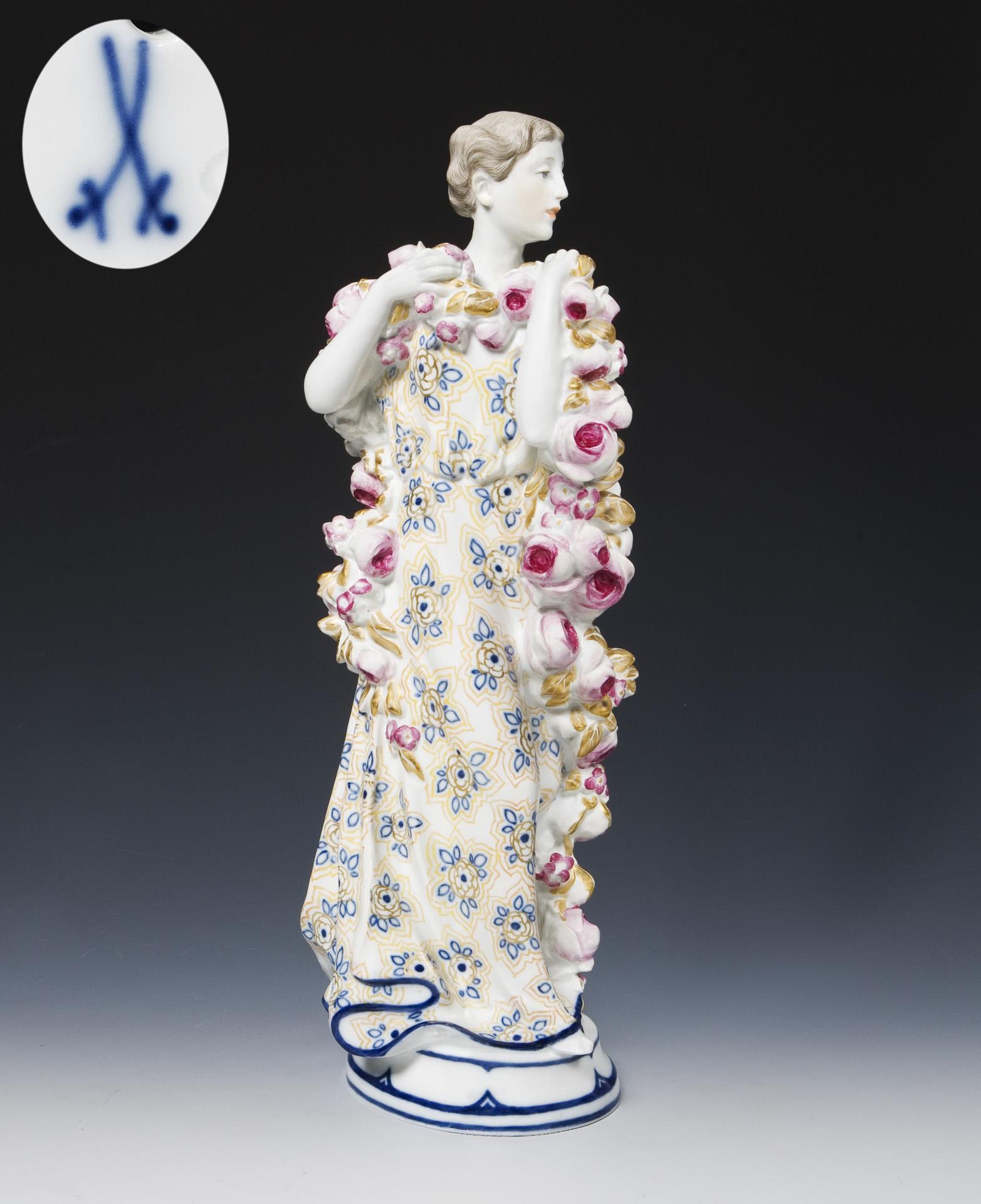 Rare large Art Nouveau figurine: Girl with rose garland. Meissen.