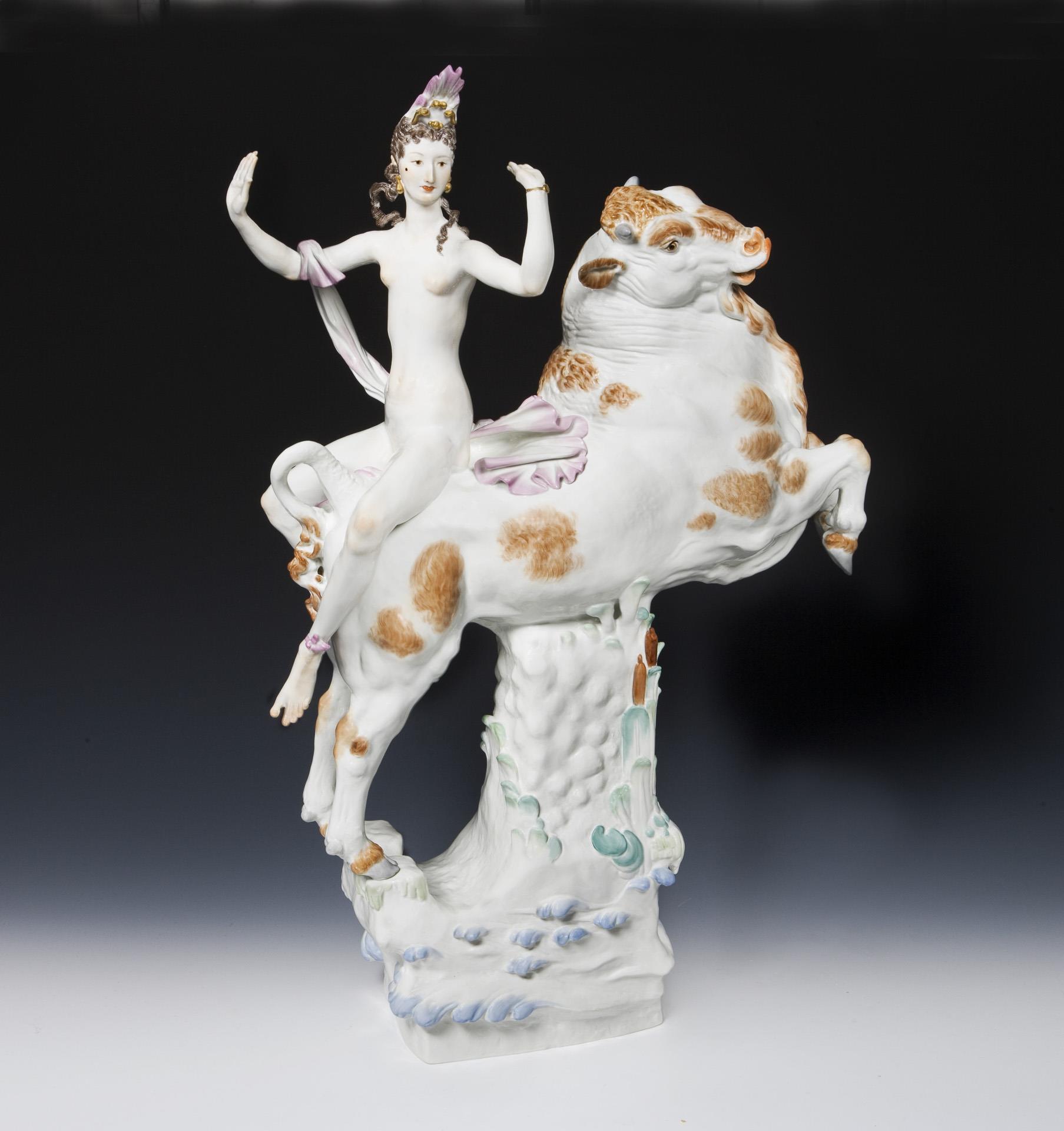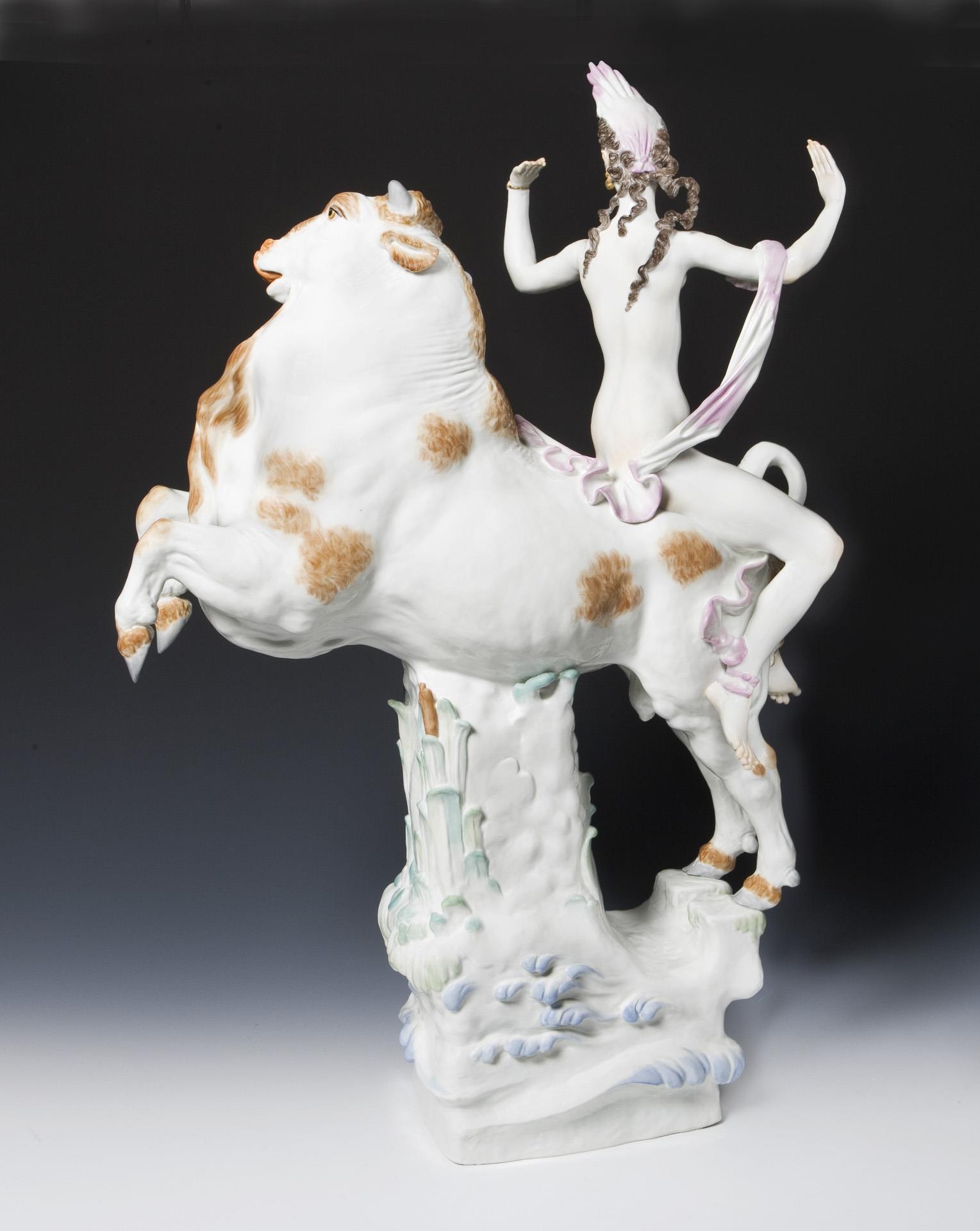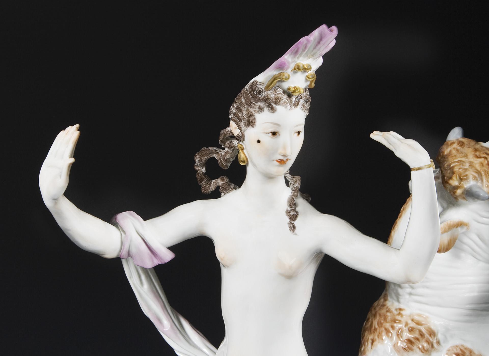 Important large Art Deco figurine group: Europe on the bull. Meissen.