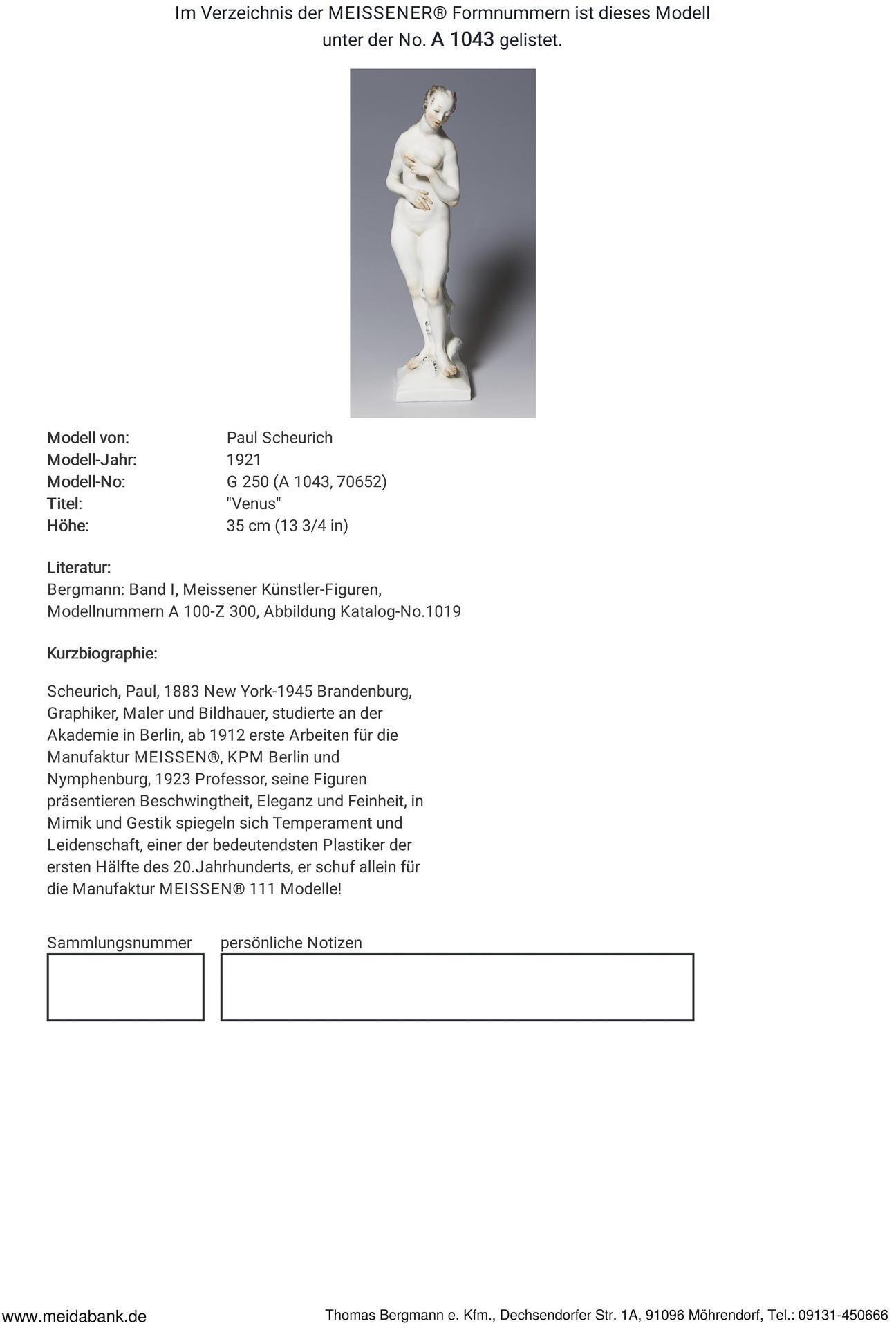 Molding 1935-1947. model year: 1921, model no. A 1043 (old mold no. G 250, new mold no. 70652). Model from. SCHEURICH, Paul(1883 New York - 1945 Brandenburg)