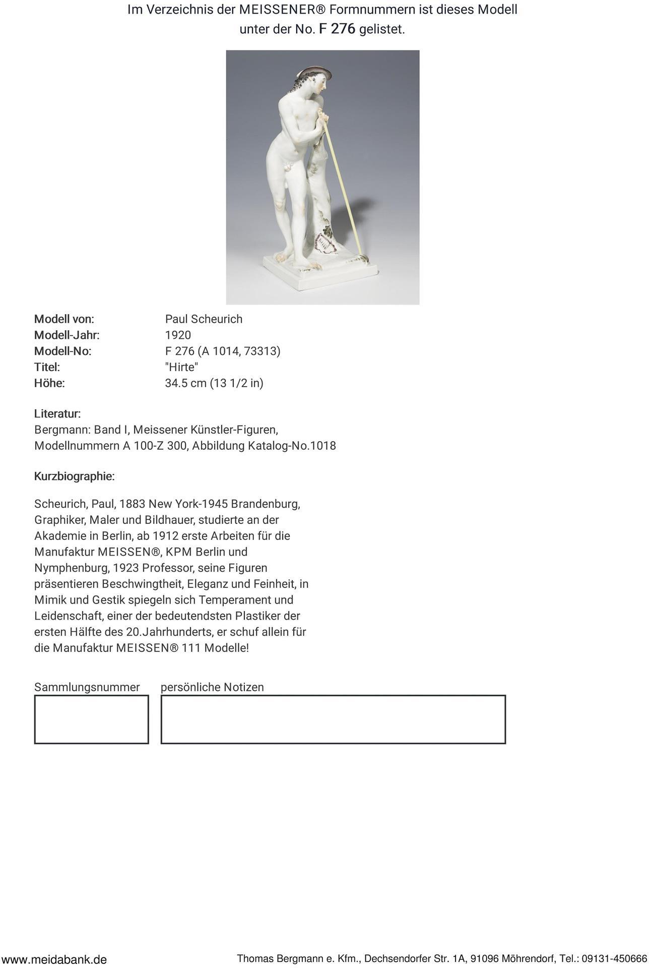 Molding 1935-1947. model year: 1920, model no. F 276 (A 1014, new mold no. 73313). Model from. SCHEURICH, Paul(1883 New York - 1945 Brandenburg)