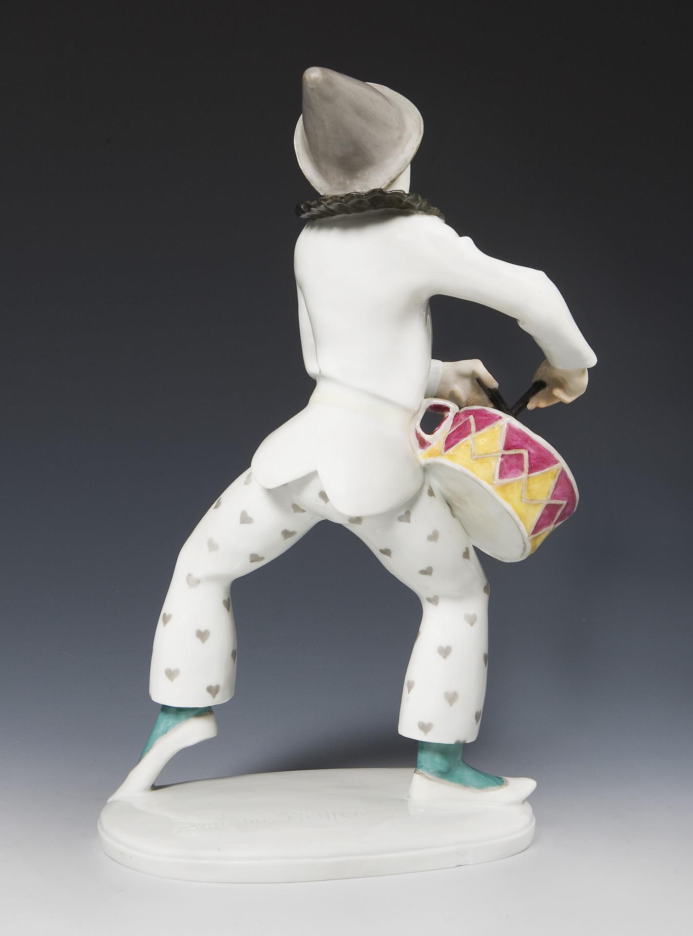 Art deco figurine: Harlequin with drum. Meissen.