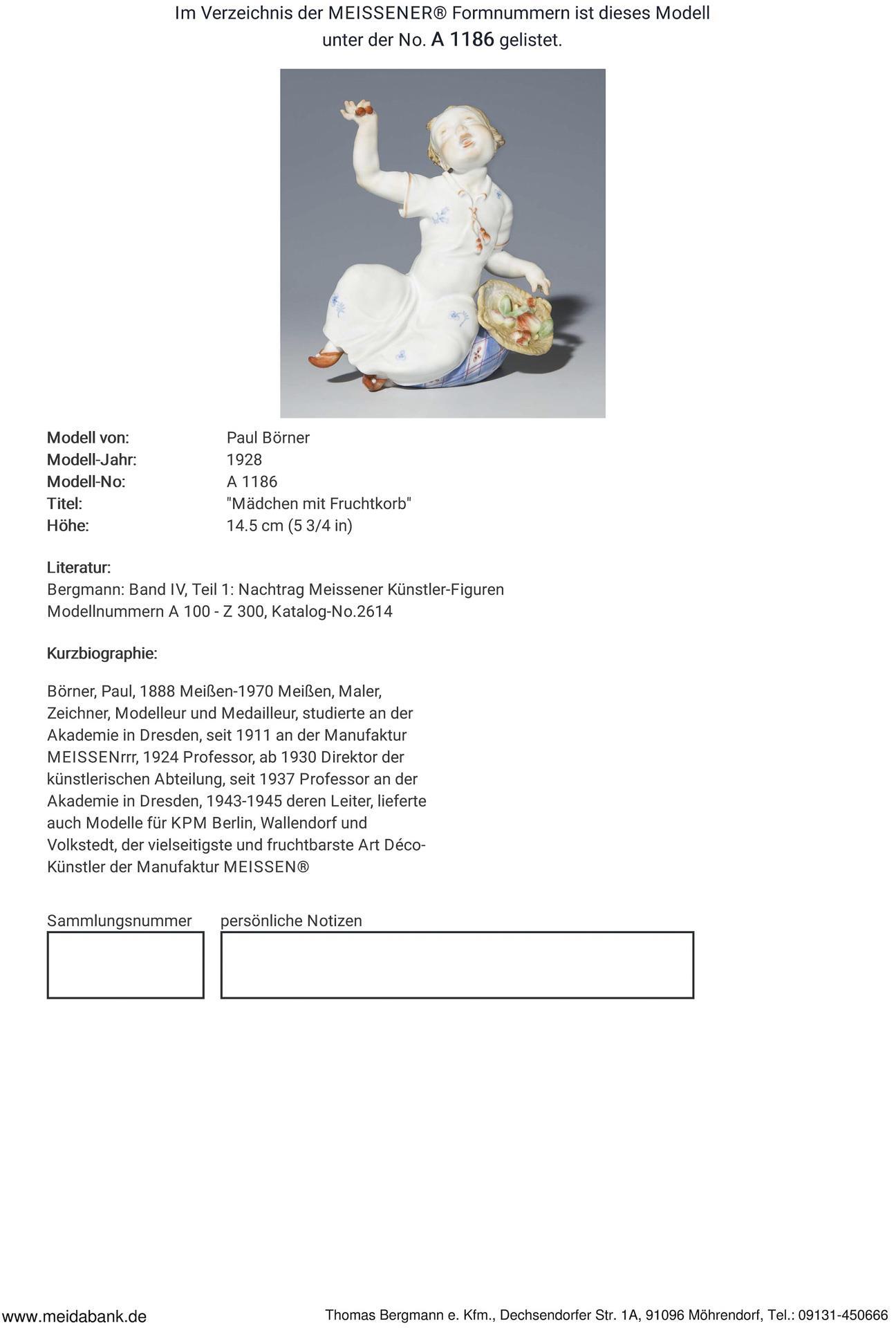 * Börner, painter, draughtsman, modeller and medallist, studied at the academy in Dresden. From 1911 at the Meissen manufactory, 1924 professor, from 1930 director of the art department, from 1937 professor at the academy in Dresden, 1943-1945 its director. Also supplied models for KPM Berlin, Wallendorf and Volkstedt, the most versatile and prolific Art Deco artist at the Meissen manufactory.