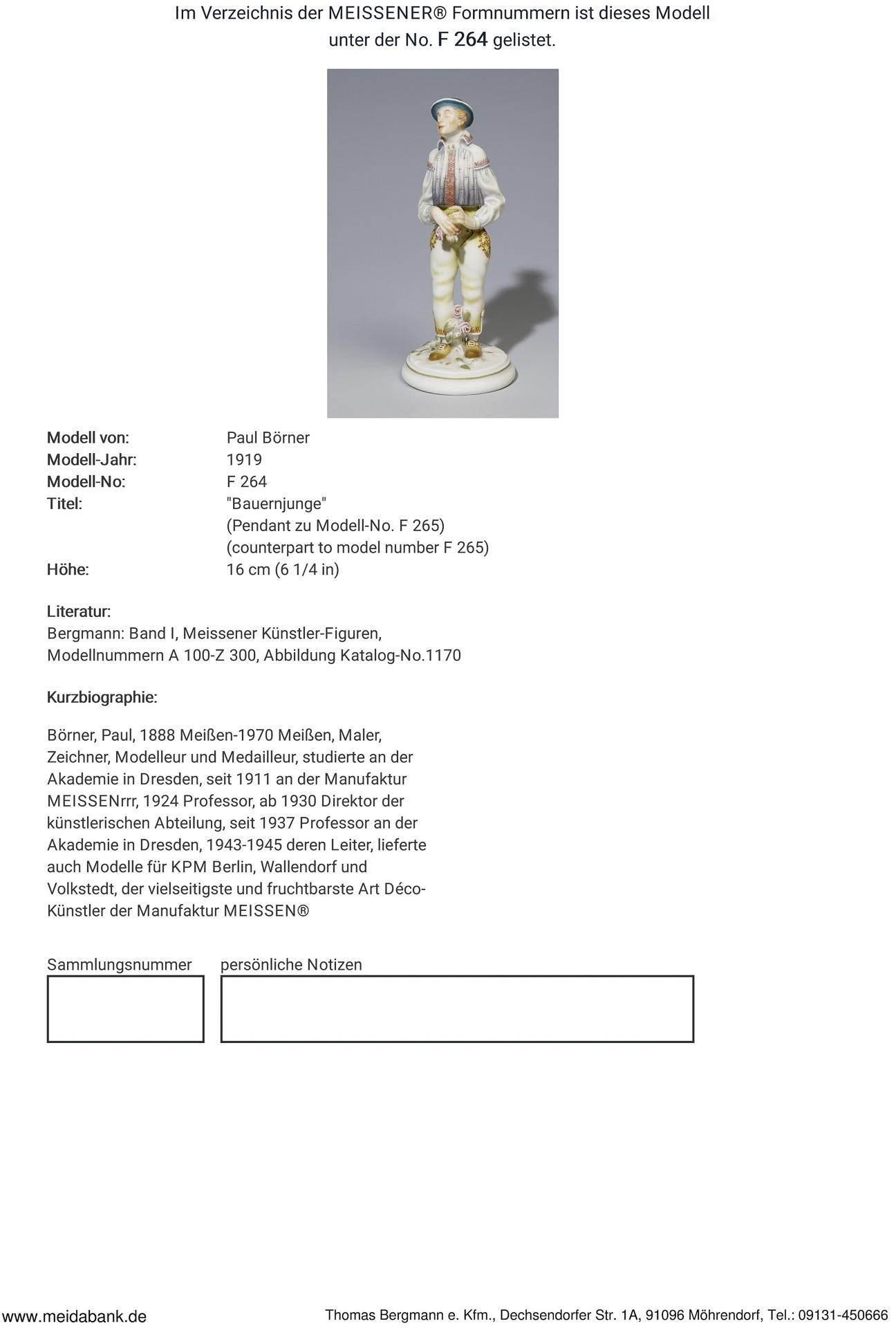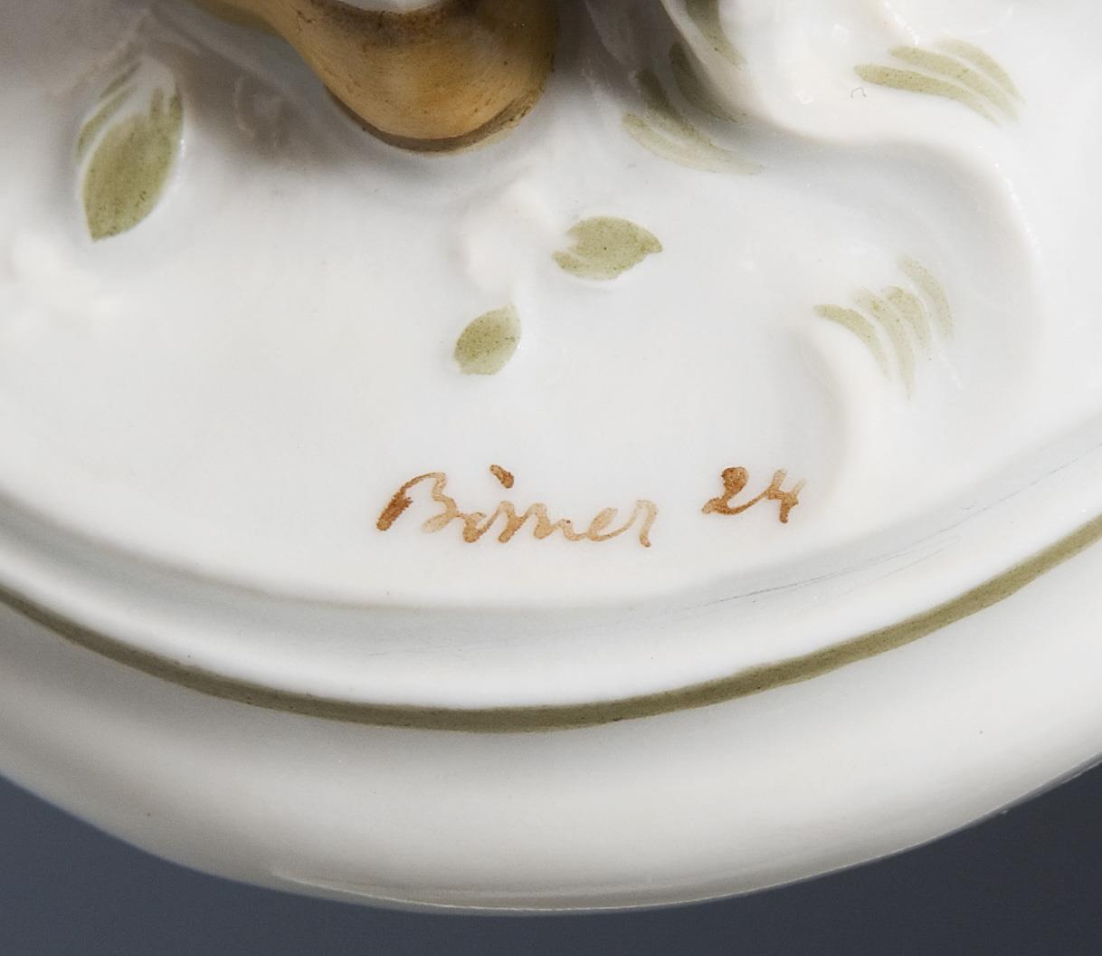 * Börner, painter, draughtsman, modeller and medallist, studied at the Academy in Dresden. From 1911 at the Meissen manufactory, 1924 professor, from 1930 director of the art department, from 1937 professor at the academy in Dresden, 1943-1945 its director. Also supplied models for KPM Berlin, Wallendorf and Volkstedt, the most versatile and prolific Art Deco artist at the Meissen manufactory.