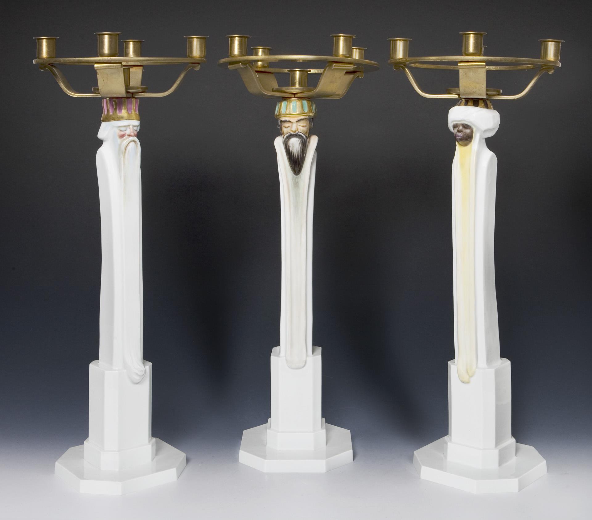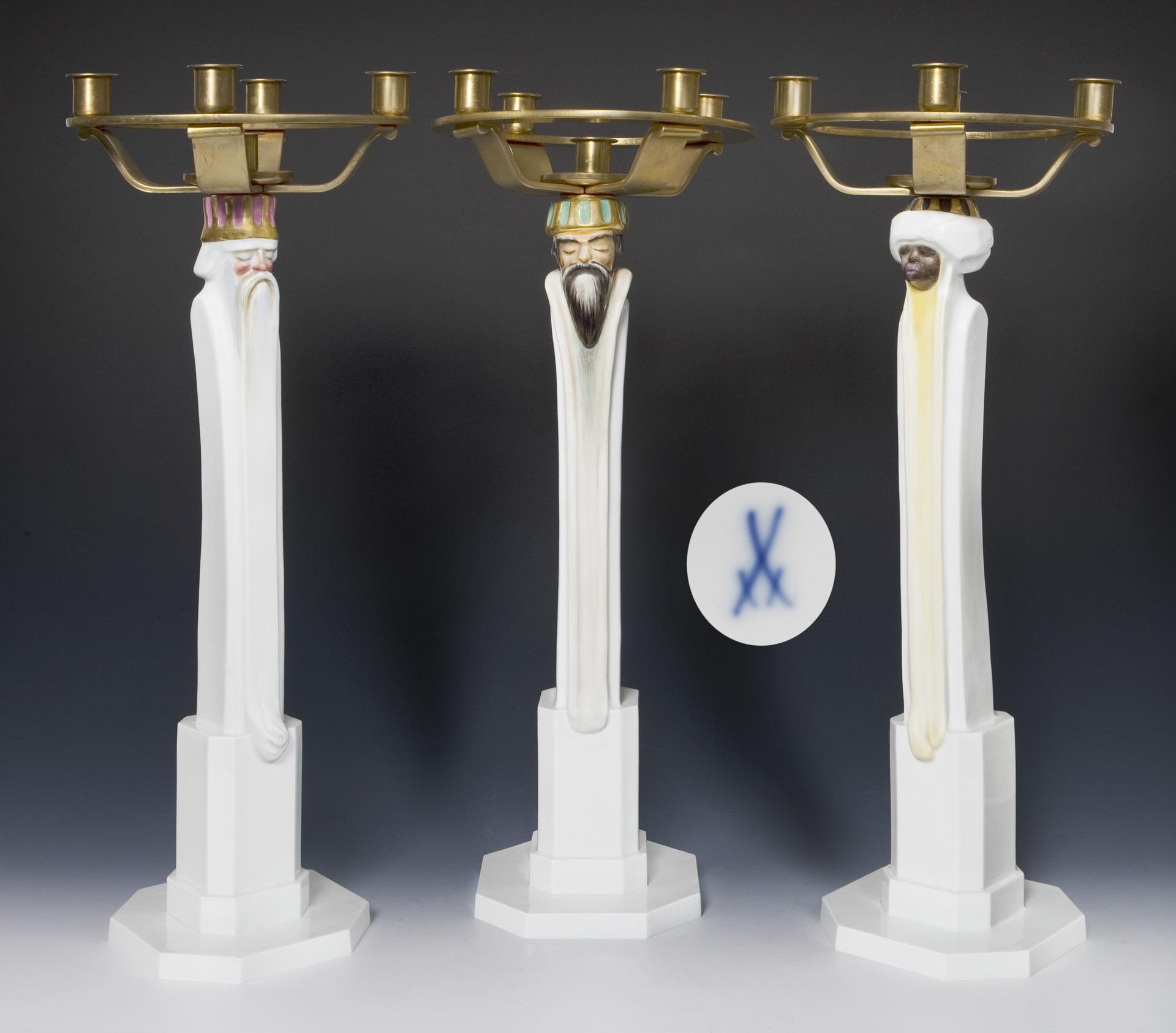Set of 3 large candlesticks: The Three Wise Men. Meissen.
