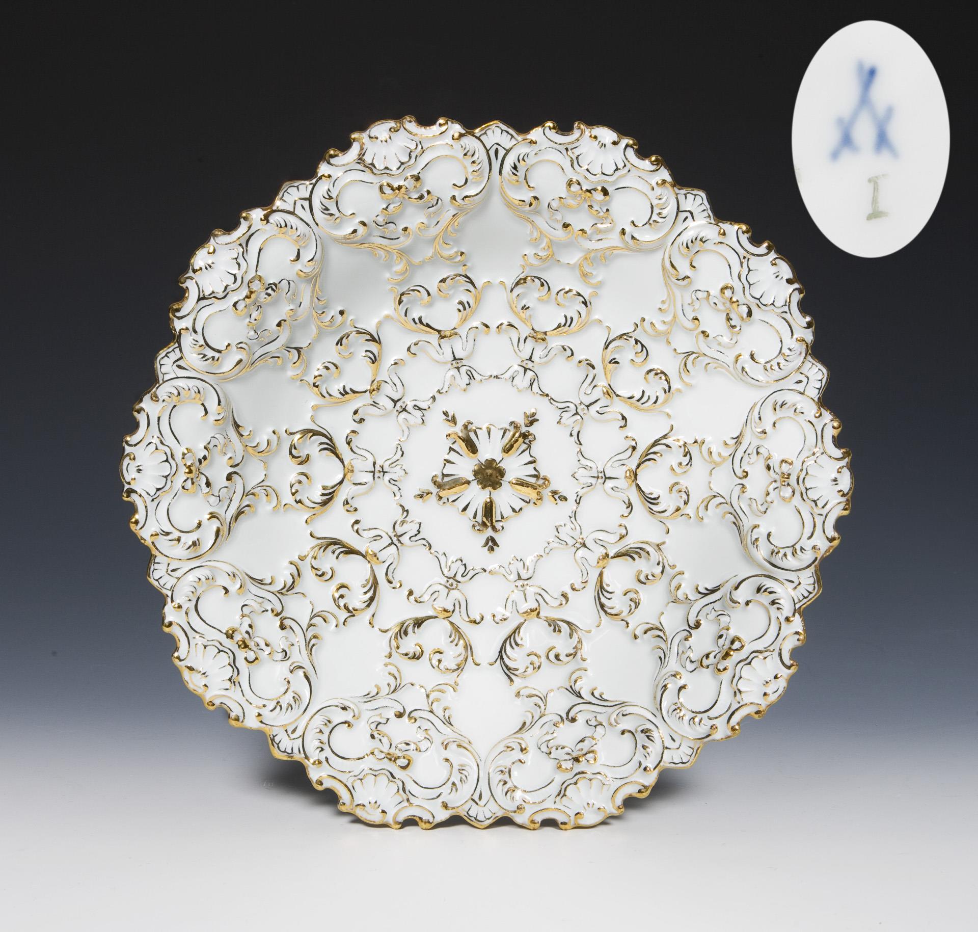 Model by Carl Gotthelf Habenicht and colleagues. Ornamental relief, painted gold. Incised mark, press mark, painter's mark, sword mark.