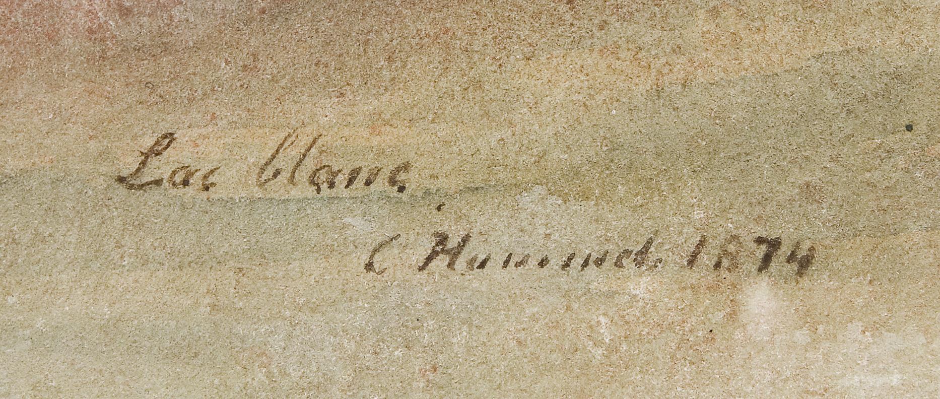 Lac Blanc (White Lake) is located at an altitude of 1052 meters above Orbey (small French town), it is one of the most famous mountain lakes in Alsace. Passepartout, glazed profiled gold frame. Partially slightly foxed.
