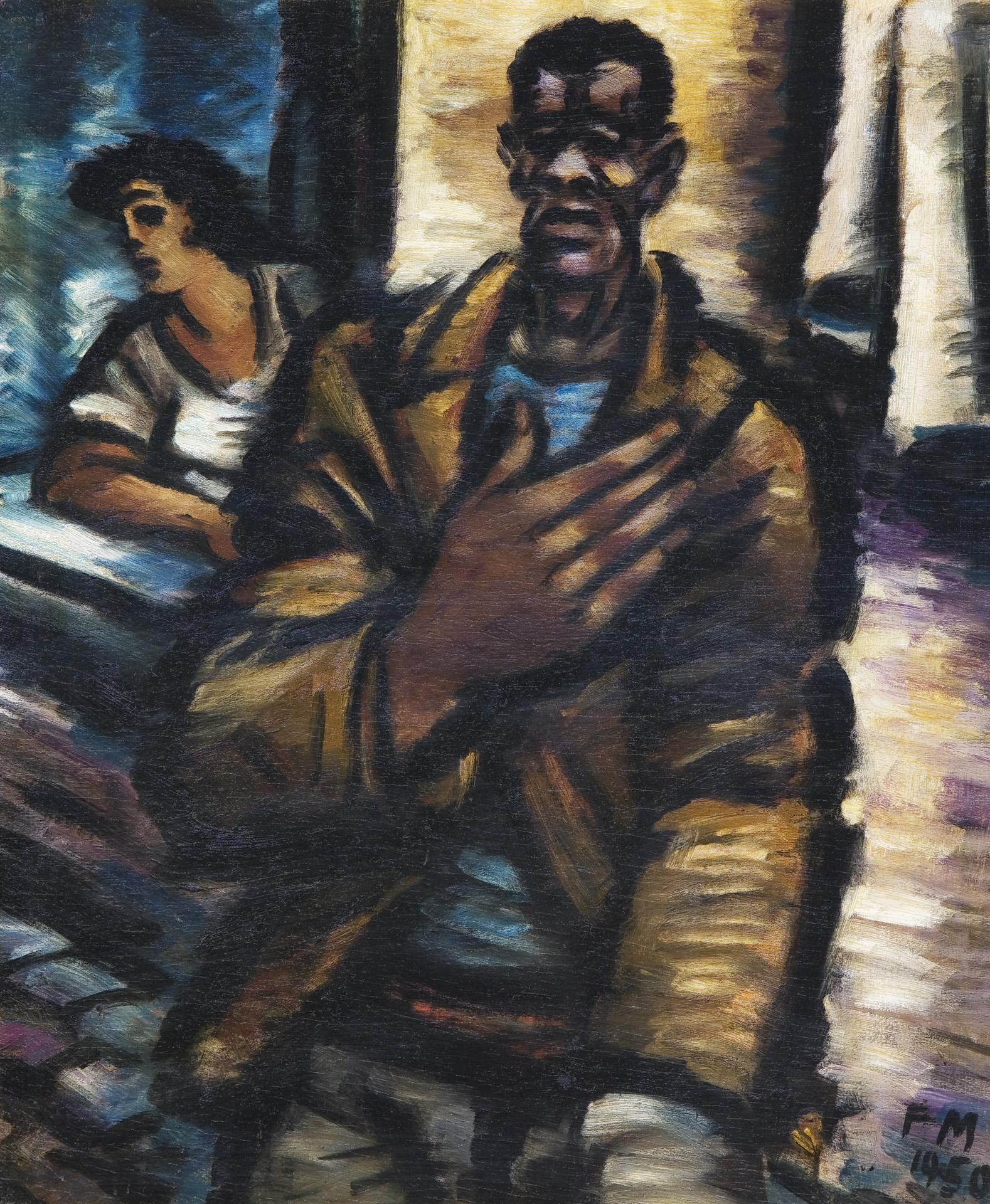 Inscribed on the reverse, signed by the artist, dated: 1950. Profiled frame with gold strips. Frame slightly defective.