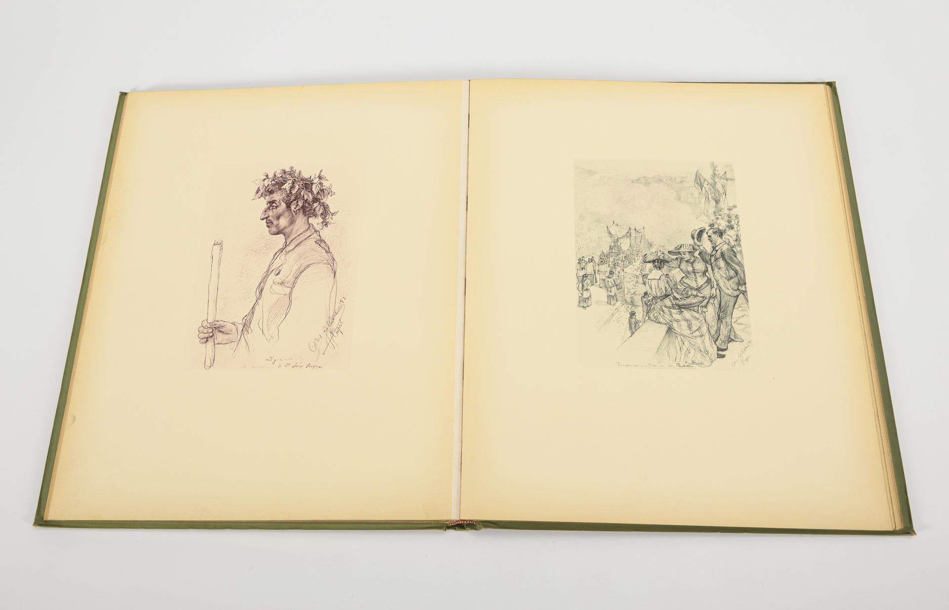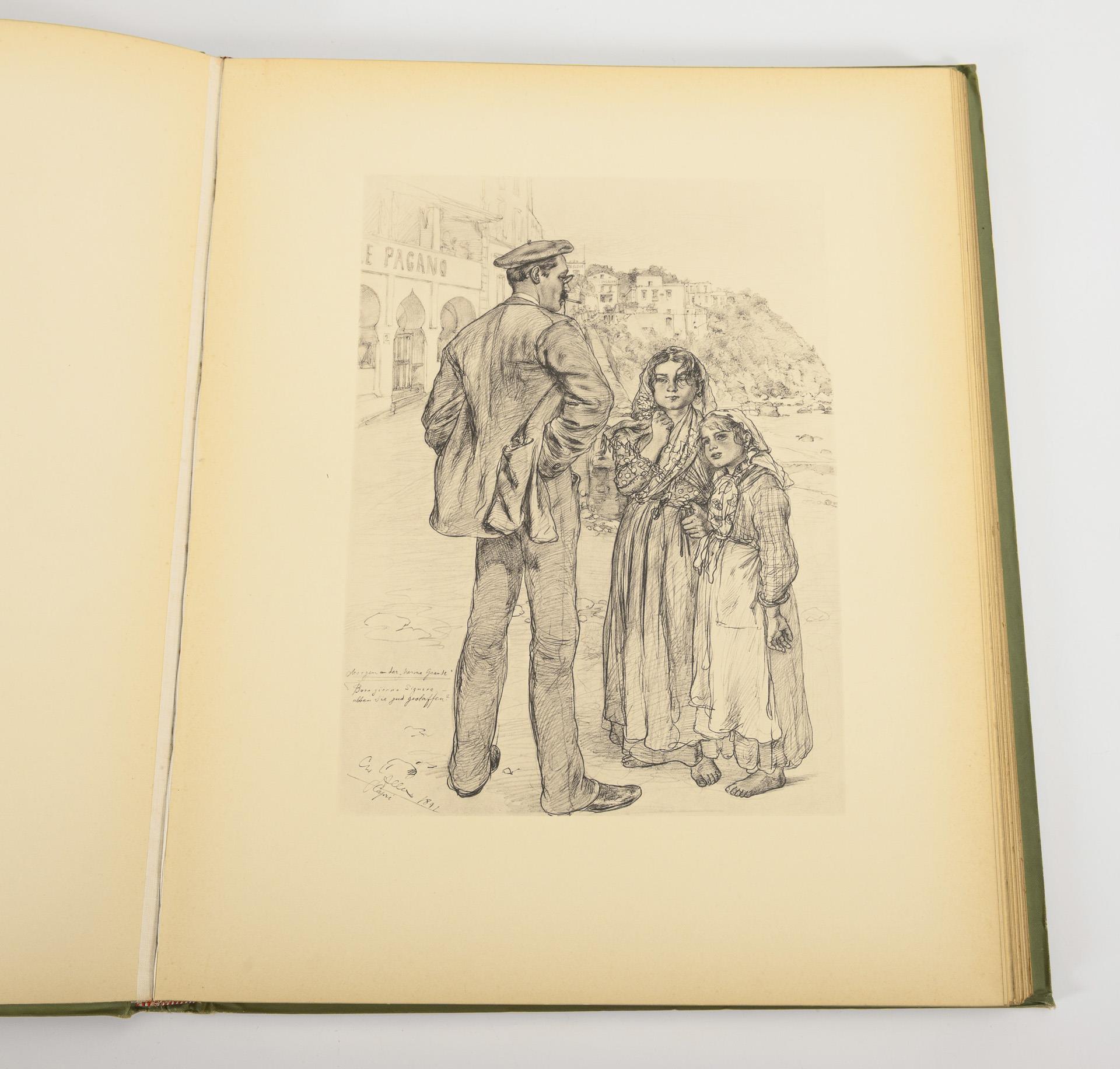8 text pages, 42 leaves with facsimile prints, in a splendid binding with gilt edges. Preface by E. von Wald-Hedtwitz, in green cloth binding. Illustrated description of the country and its people. Binding slightly soiled.