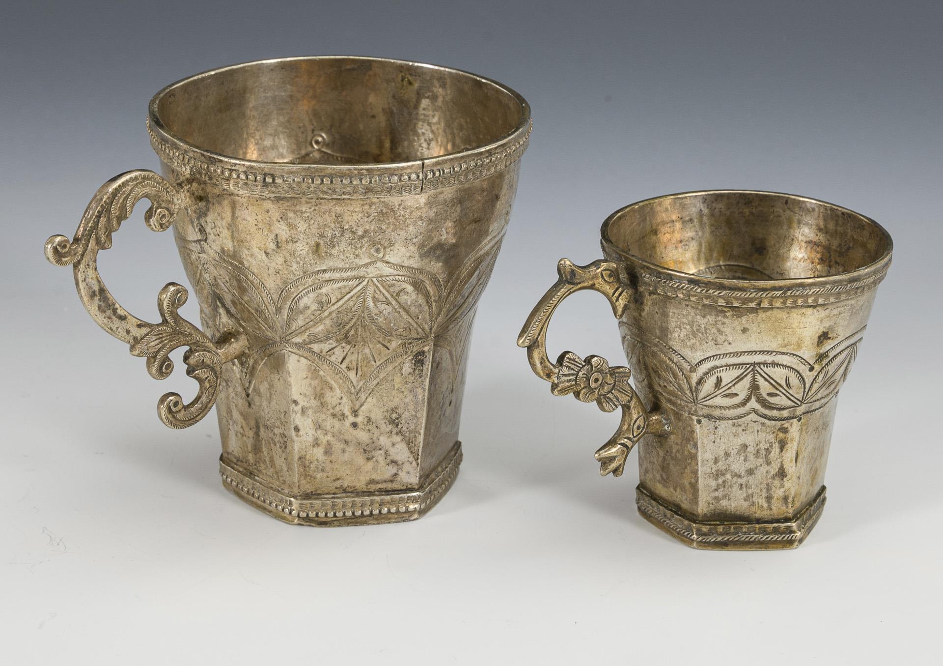 You are here:   Home Categories Silver 3 koloniale Trinkgefäße aus Lapaz - 2 Henkeltassen und vierpassiger Becher