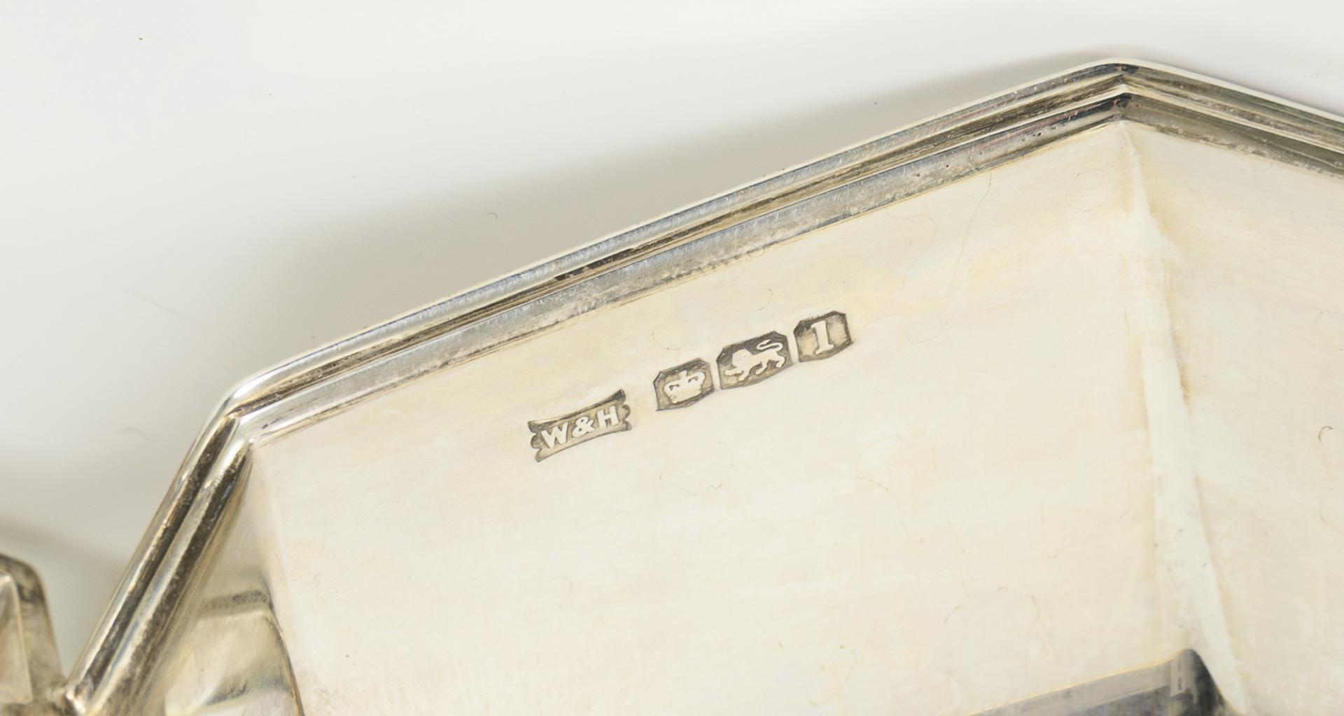 5-piece, English silver set. Walker & Hall, Sheffield.
