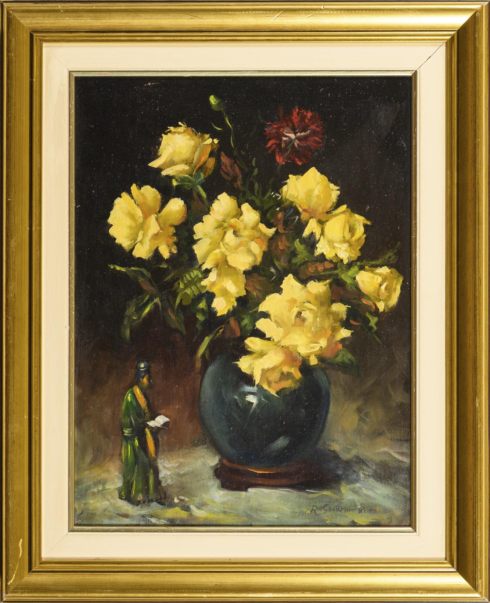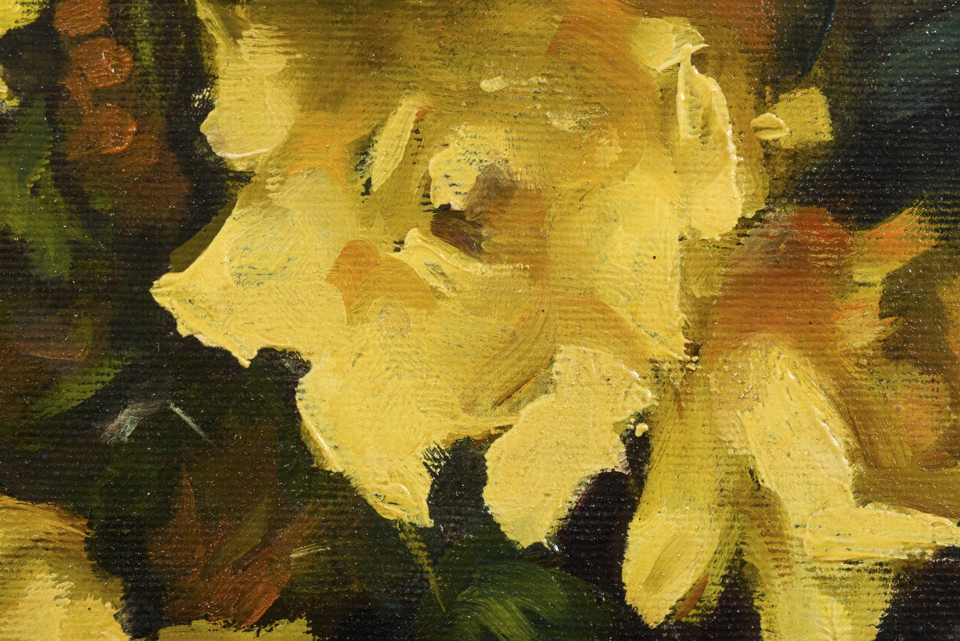 Indistinctly signed: Still life with yellow roses