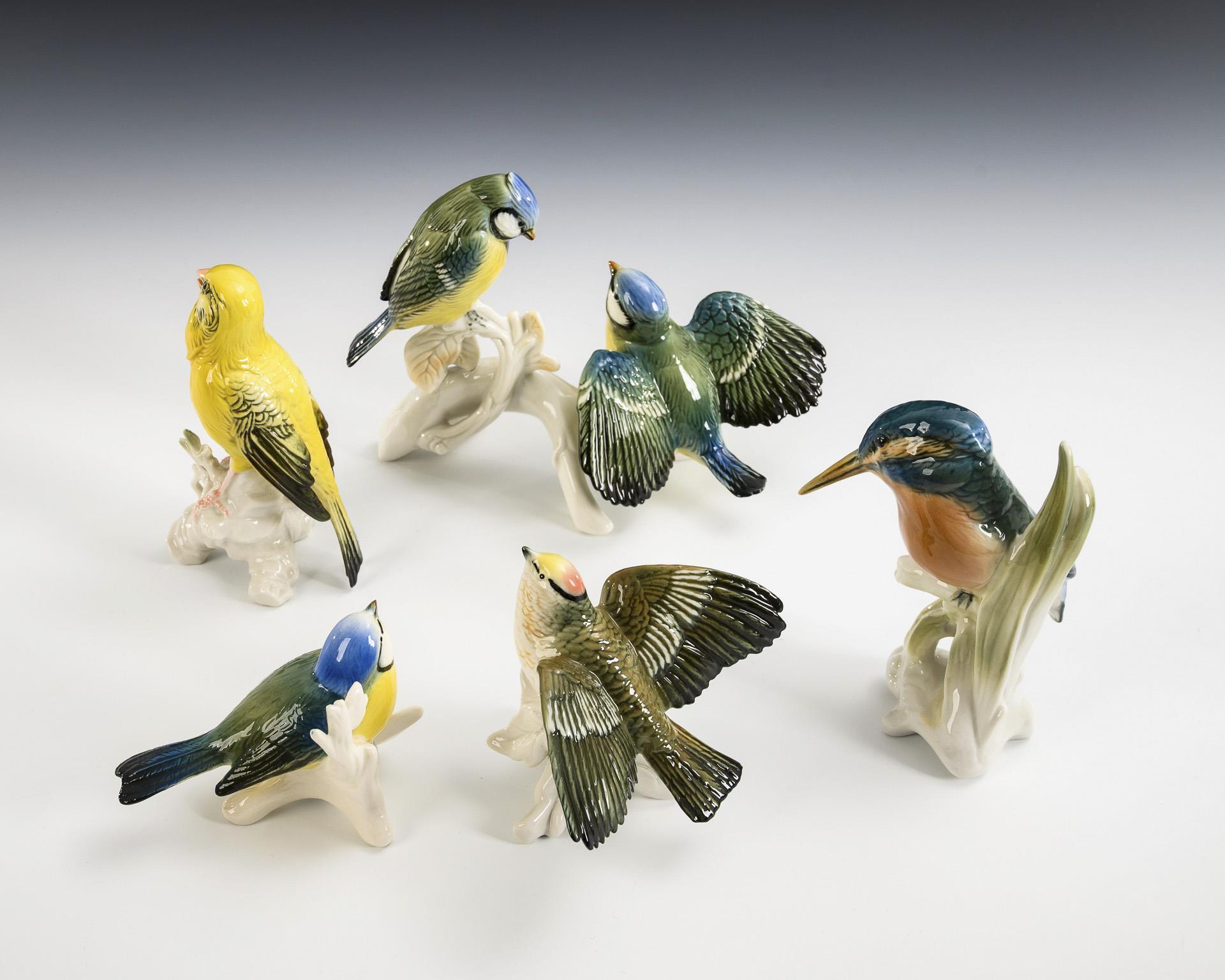 Blue tit group, blue tit, kingfisher, canary and goldcrest.