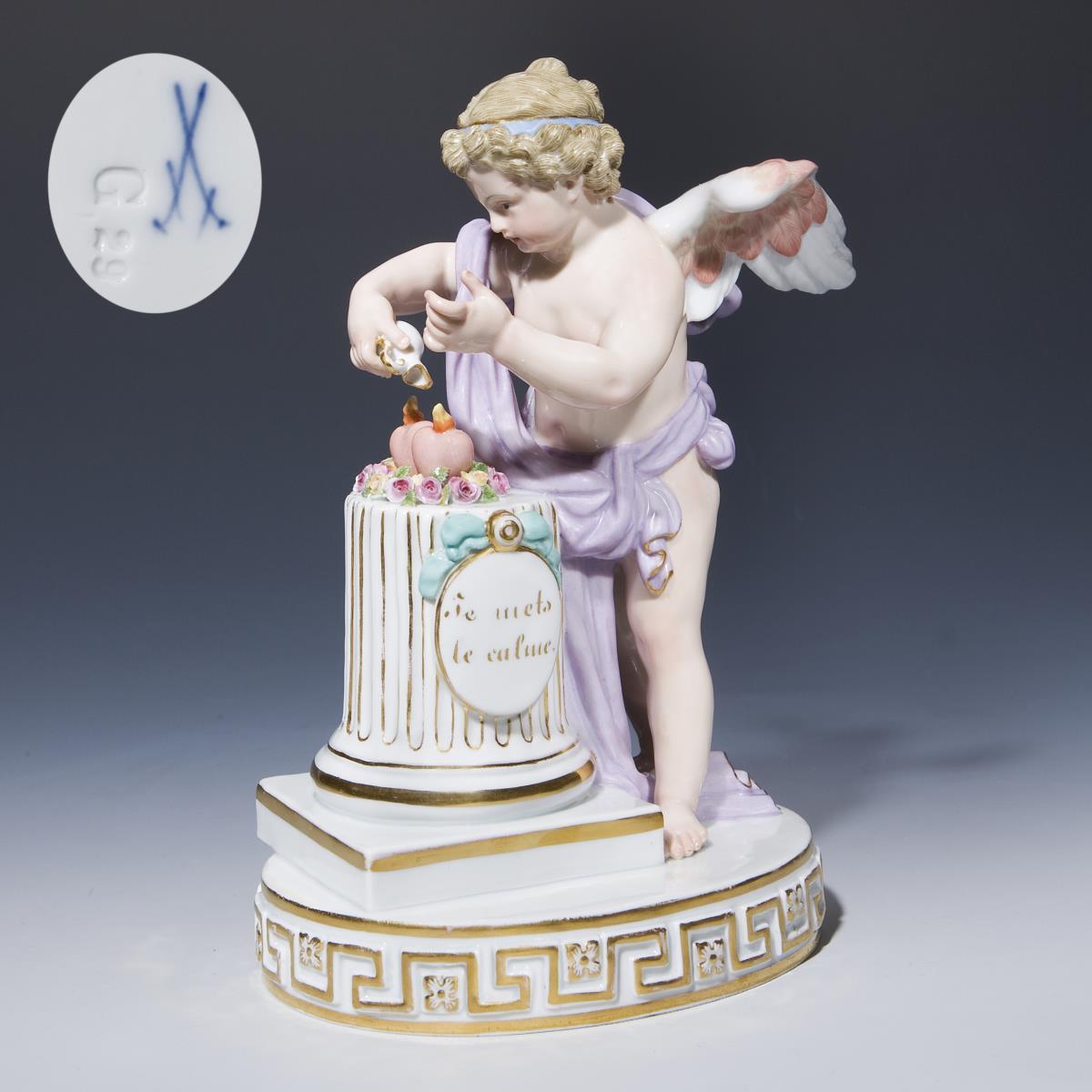 Modell von Michel Victor Acier 1779-1781. "Je mets les calme". Farbig bemalt, gold staffiert. Ritzmarke, Pressmarke, Malermarke, Schwertermarke 1. Wahl.