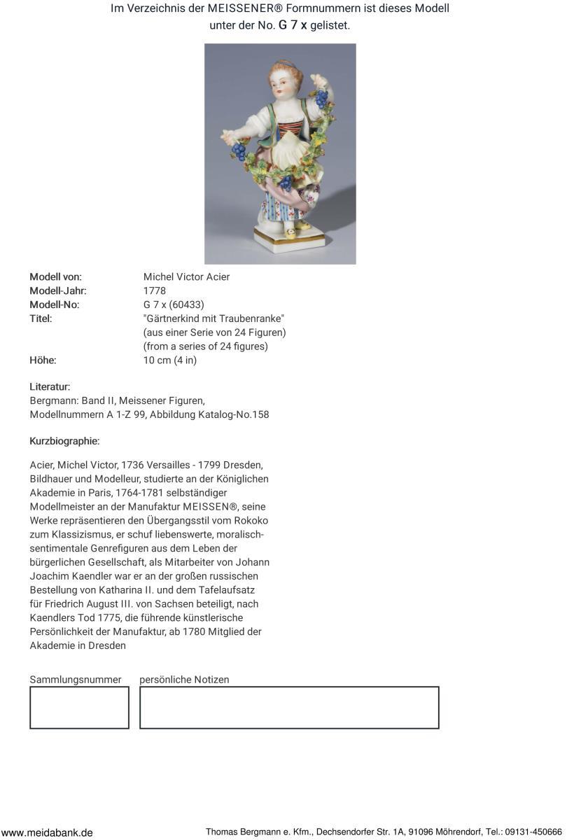 Acier, Bildhauer und Modelleur. 1764-1781 selbständiger Modellmeister in Meissen * Partnerauktion Bergmann.