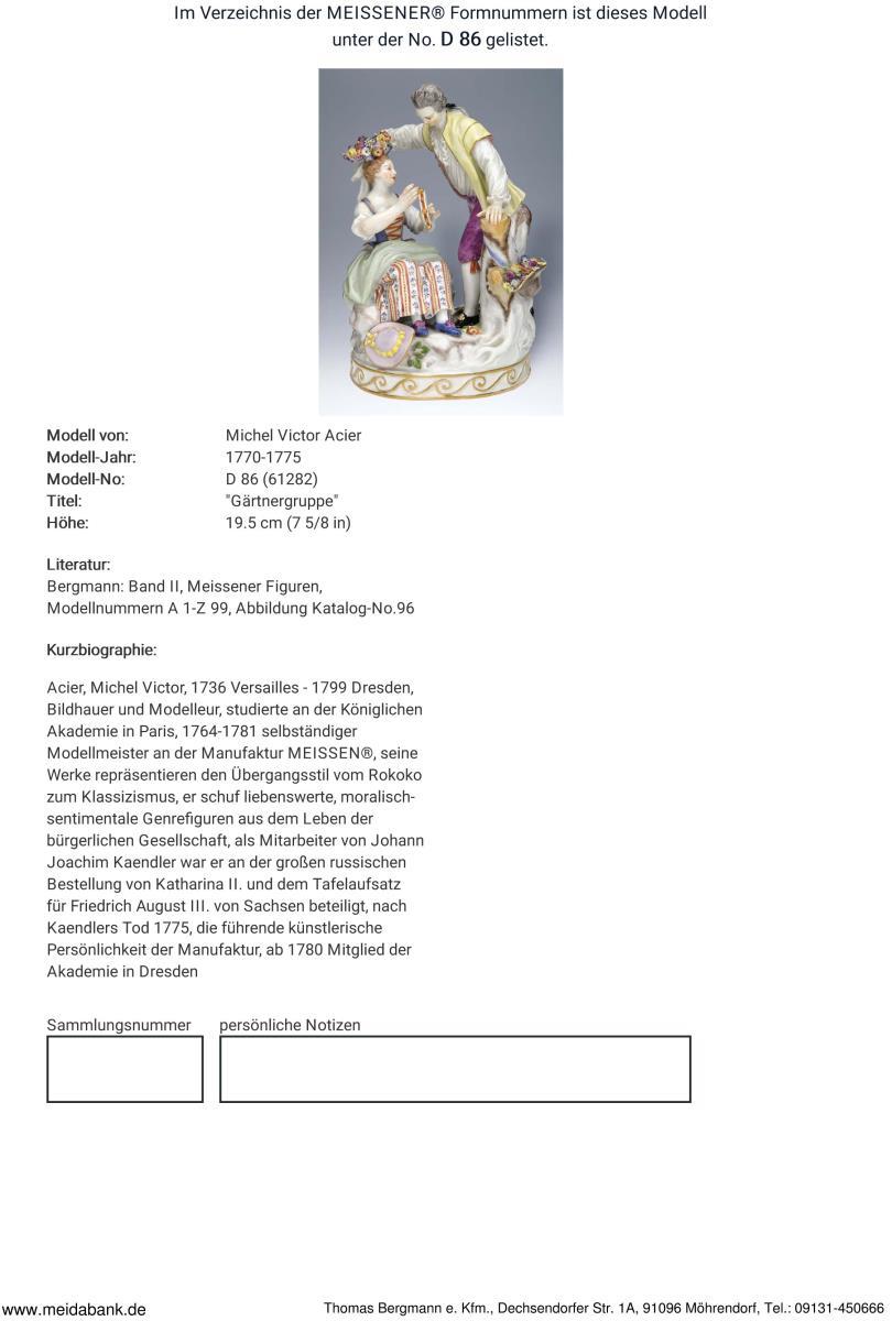 Acier, Bildhauer und Modelleur. 1764-1781 selbständiger Modellmeister in Meissen * Partnerauktion Bergmann.