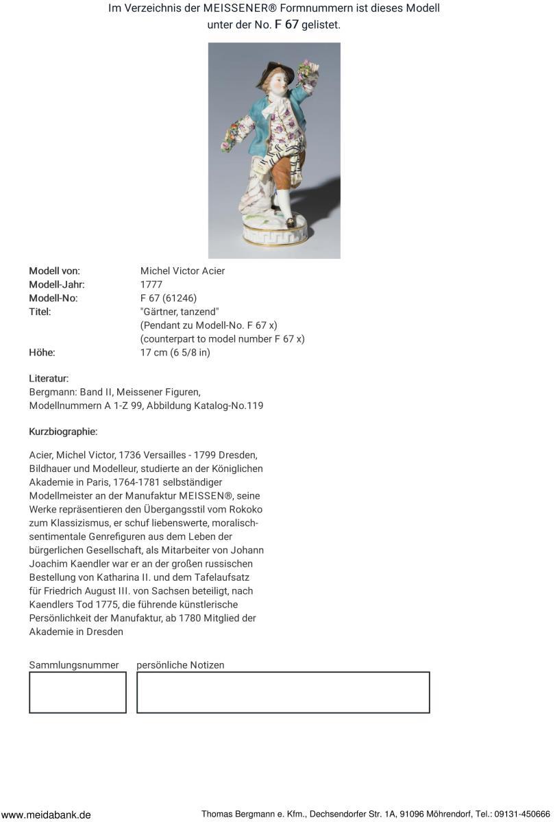 Acier, Bildhauer und Modelleur. 1764-1781 selbständiger Modellmeister in Meissen * Partnerauktion Bergmann.