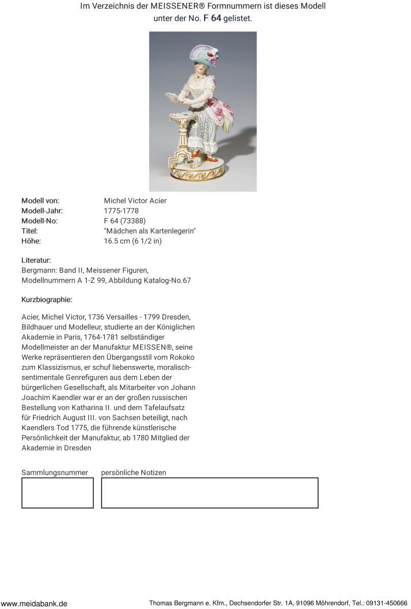 Acier, Bildhauer und Modelleur. 1764-1781 selbständiger Modellmeister in Meissen * Partnerauktion Bergmann.
