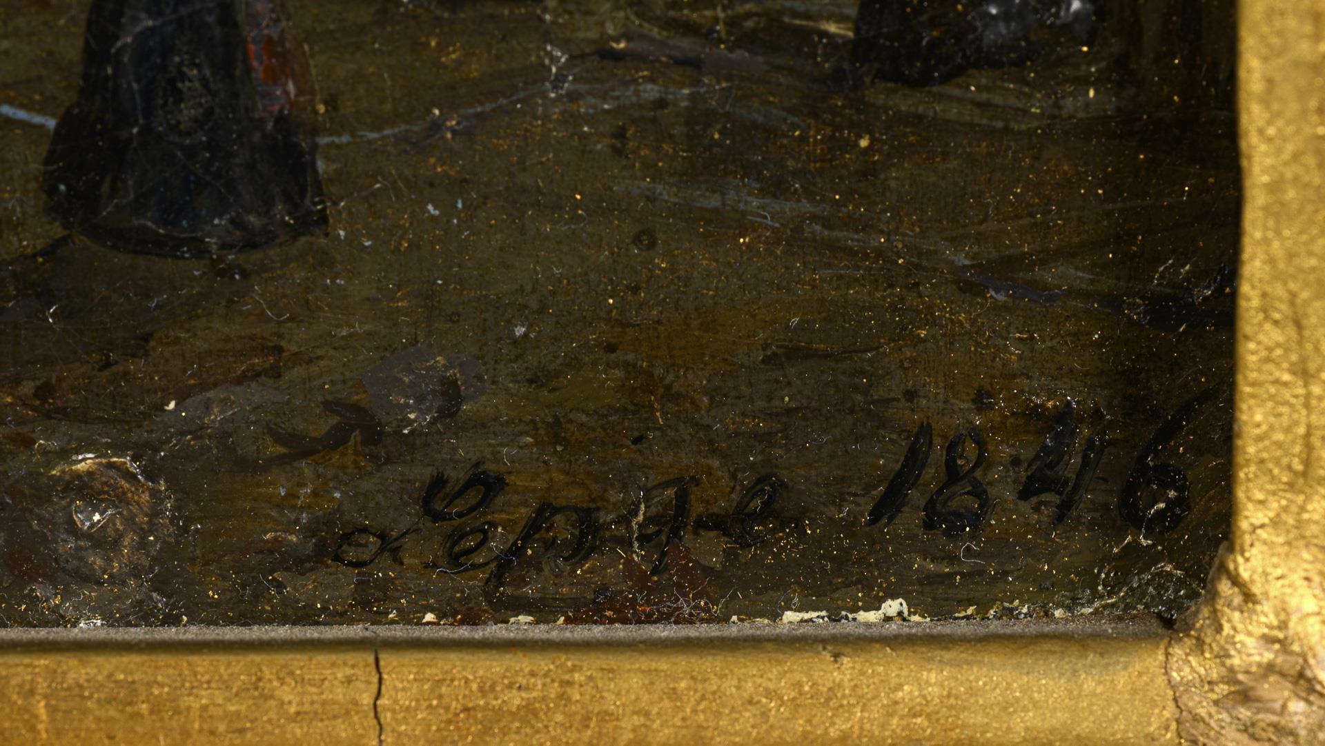 Image section 37 x 27 cm. Framed : 62 x 53 cm (gold stucco frame).