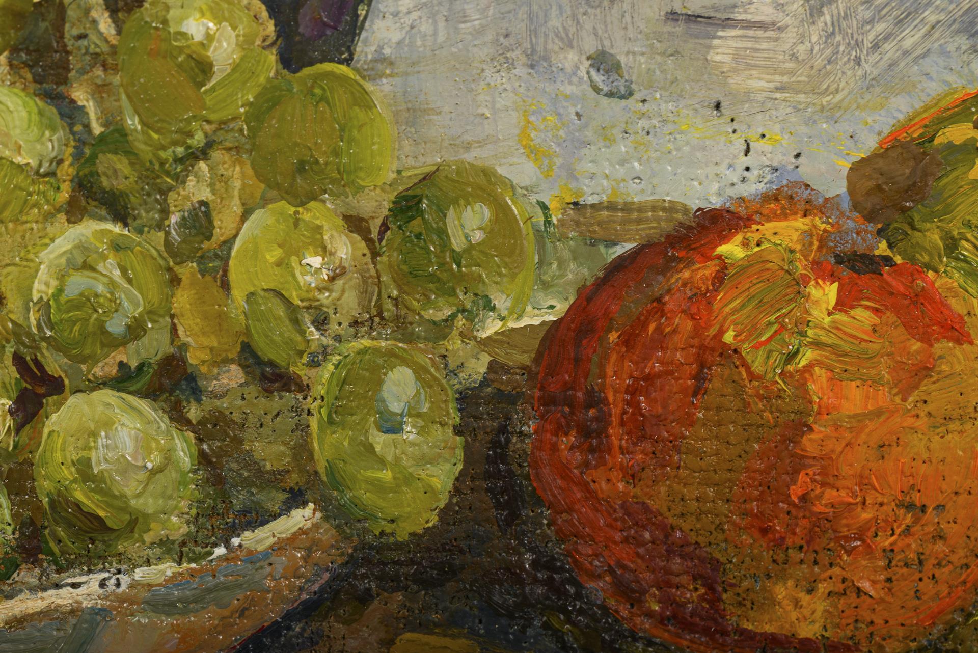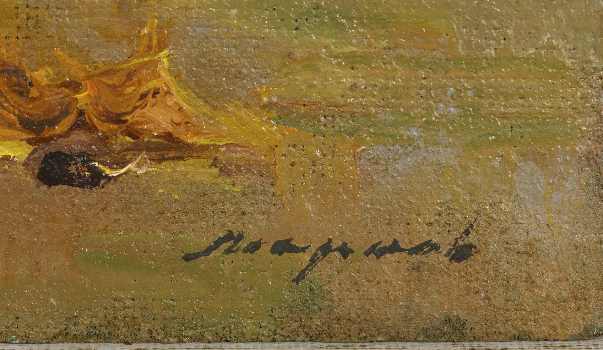 Oil/painting card. Indistinctly signed in Cyrillic lower right, indistinct Cyrillic stamp on verso. 20.