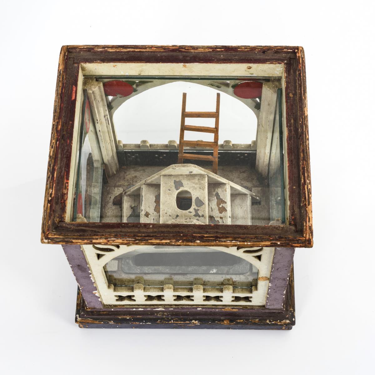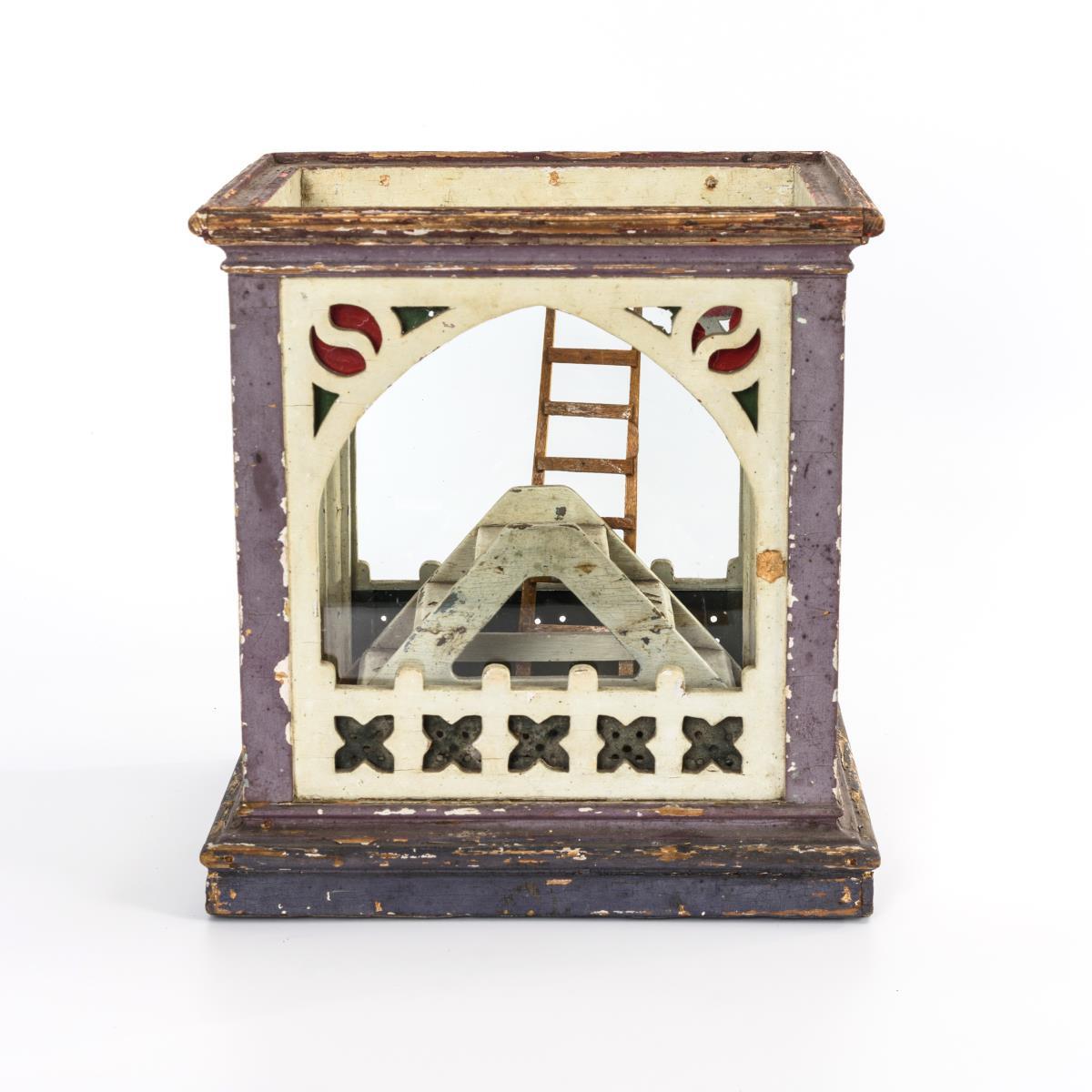 Holz bemalt, Glas teils bemalt, Zinkwanne.