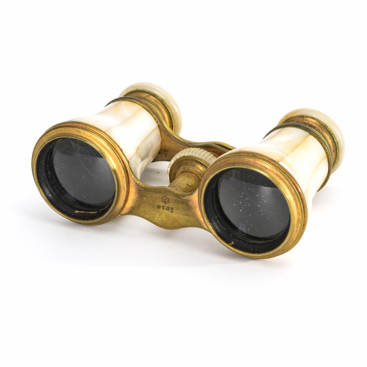Perlmutt-Opernglas im Lederetui.