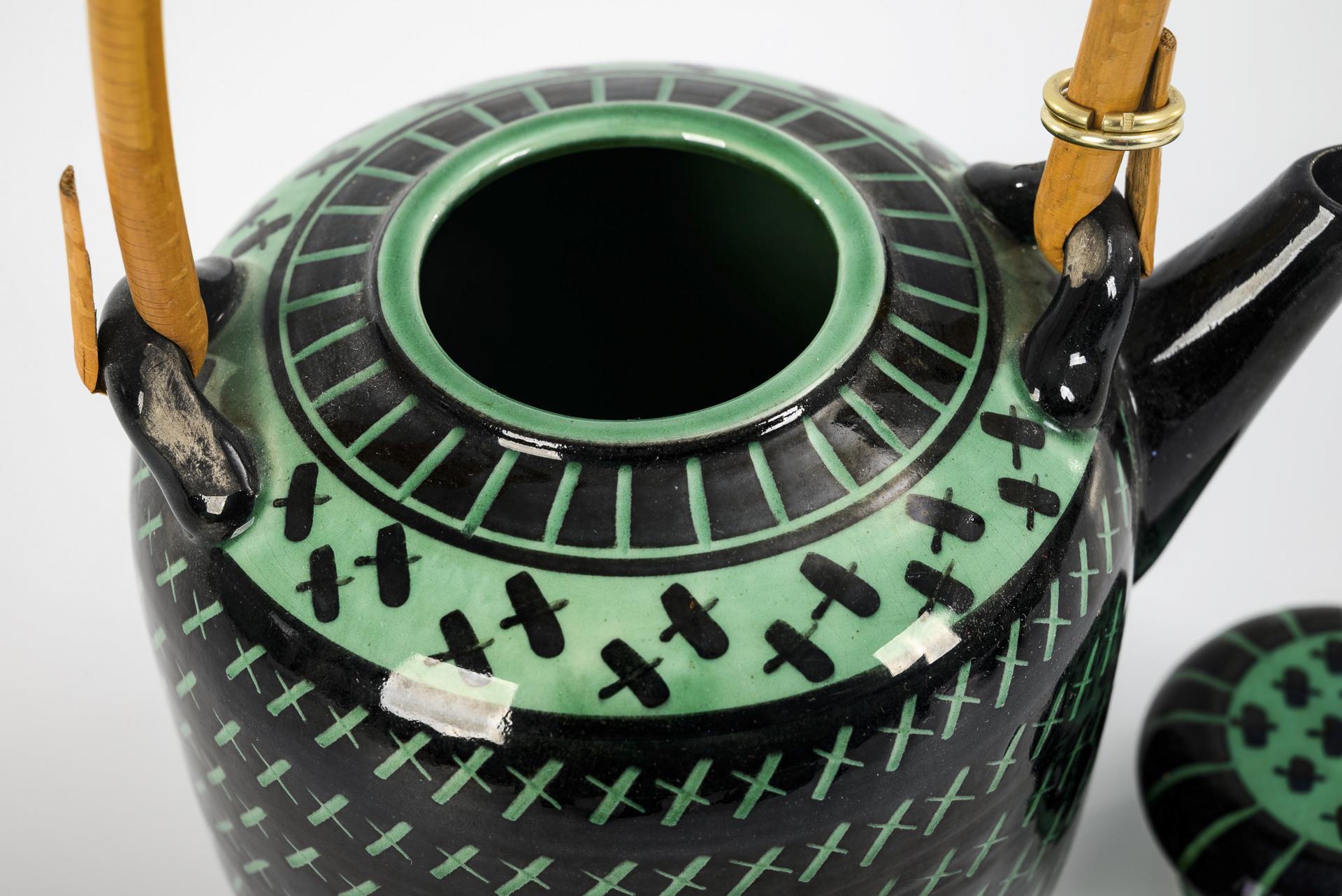 6 pieces of a black and green tea set by Hedwig Bollhagen. HB workshops for ceramics in Marwitz.