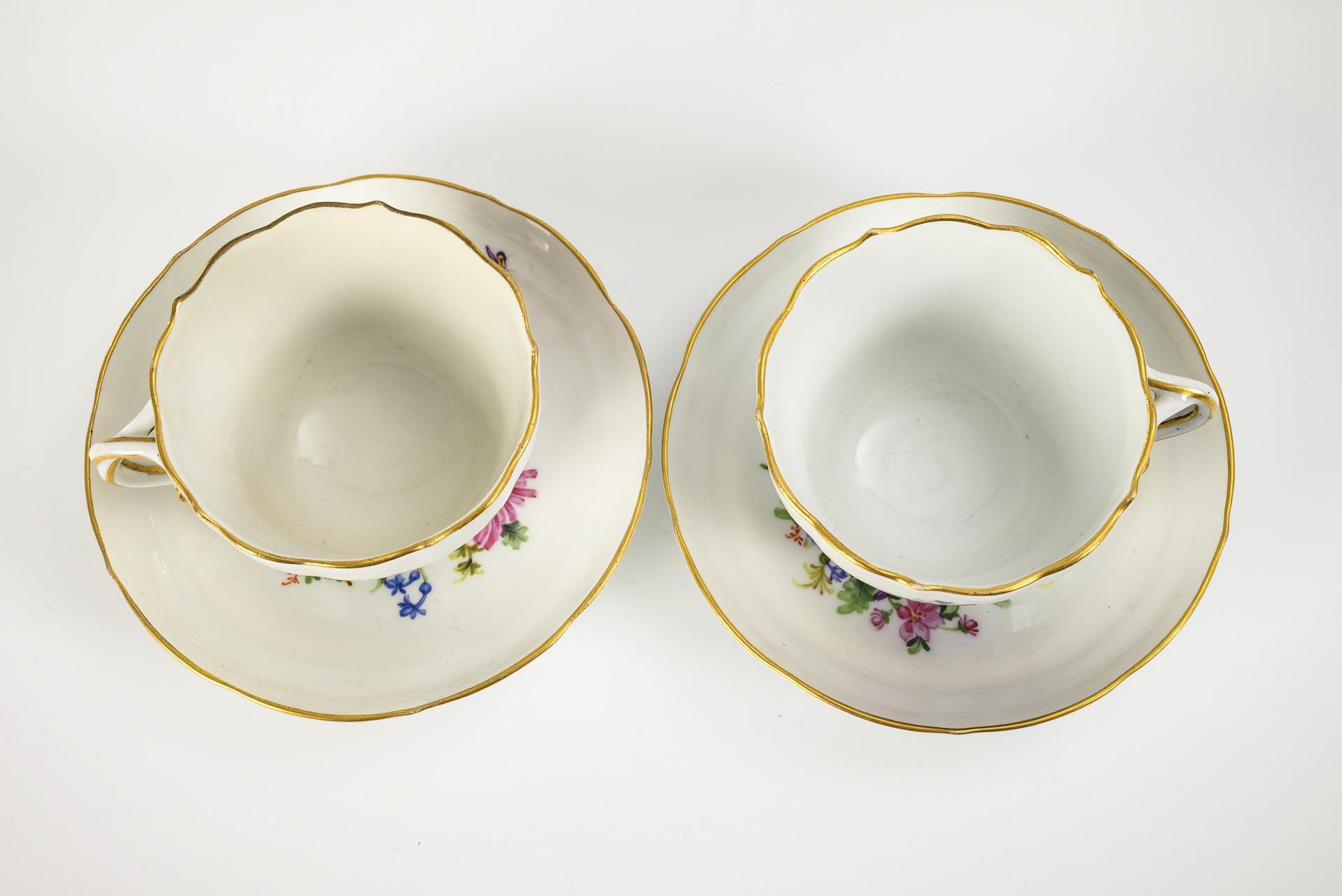 Dejeuner with flower and insect painting. Meissen.