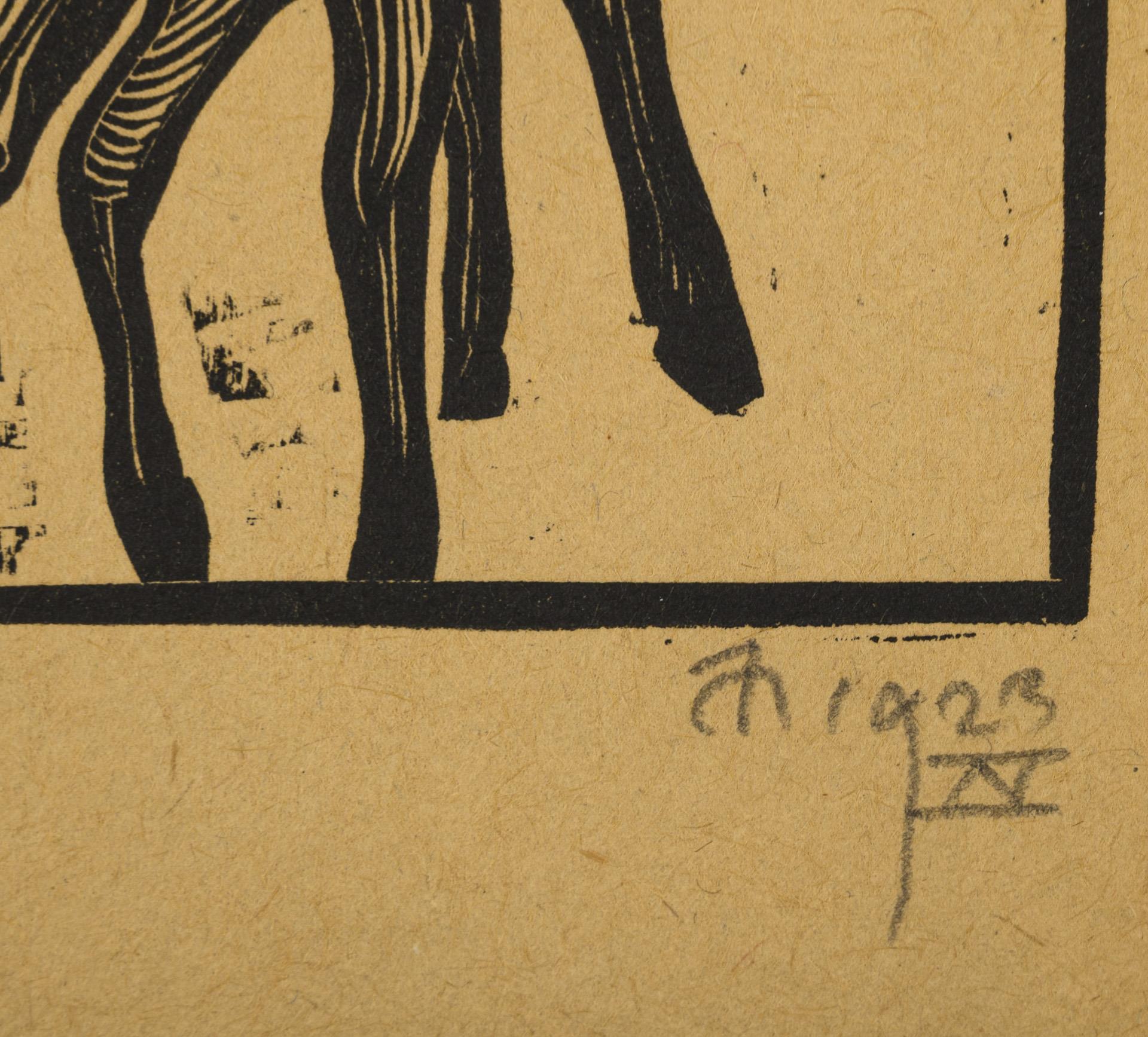 Woodcut, on browned laid paper. Pencil signature and dated. 1923.