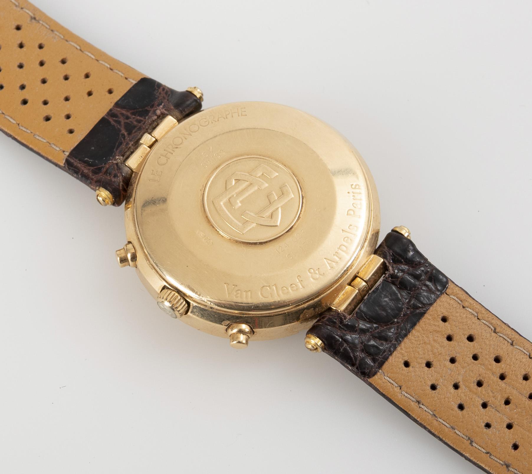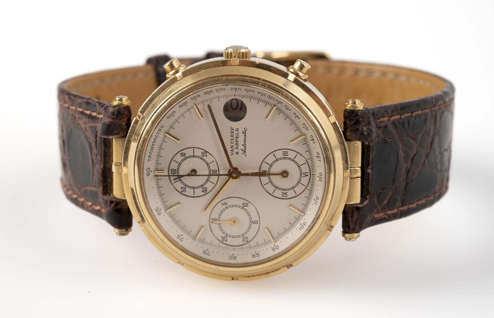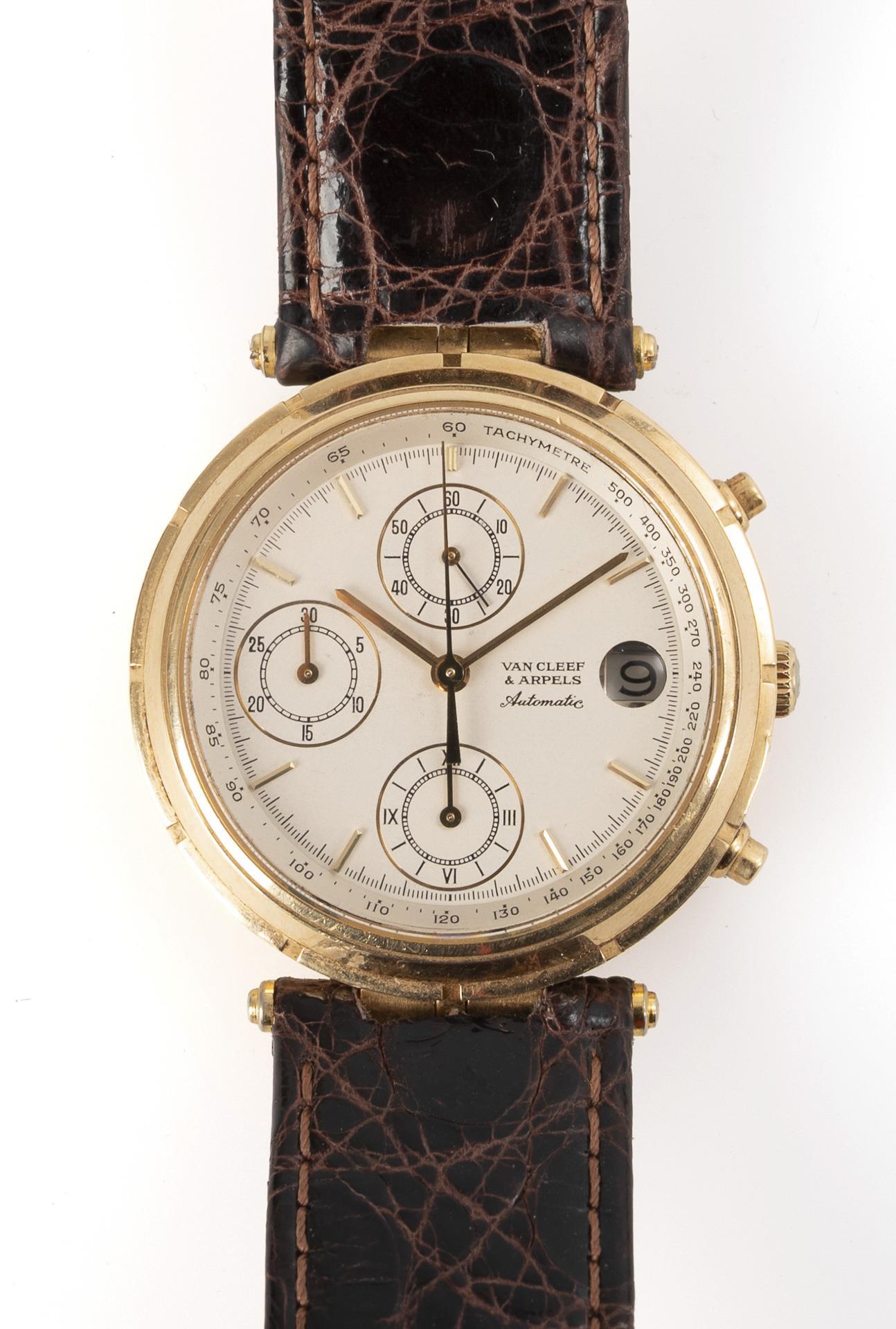 Gold automatic wristwatch with tachymeter scale "Le Chronographe". Van Cleef & Arpels, Paris.