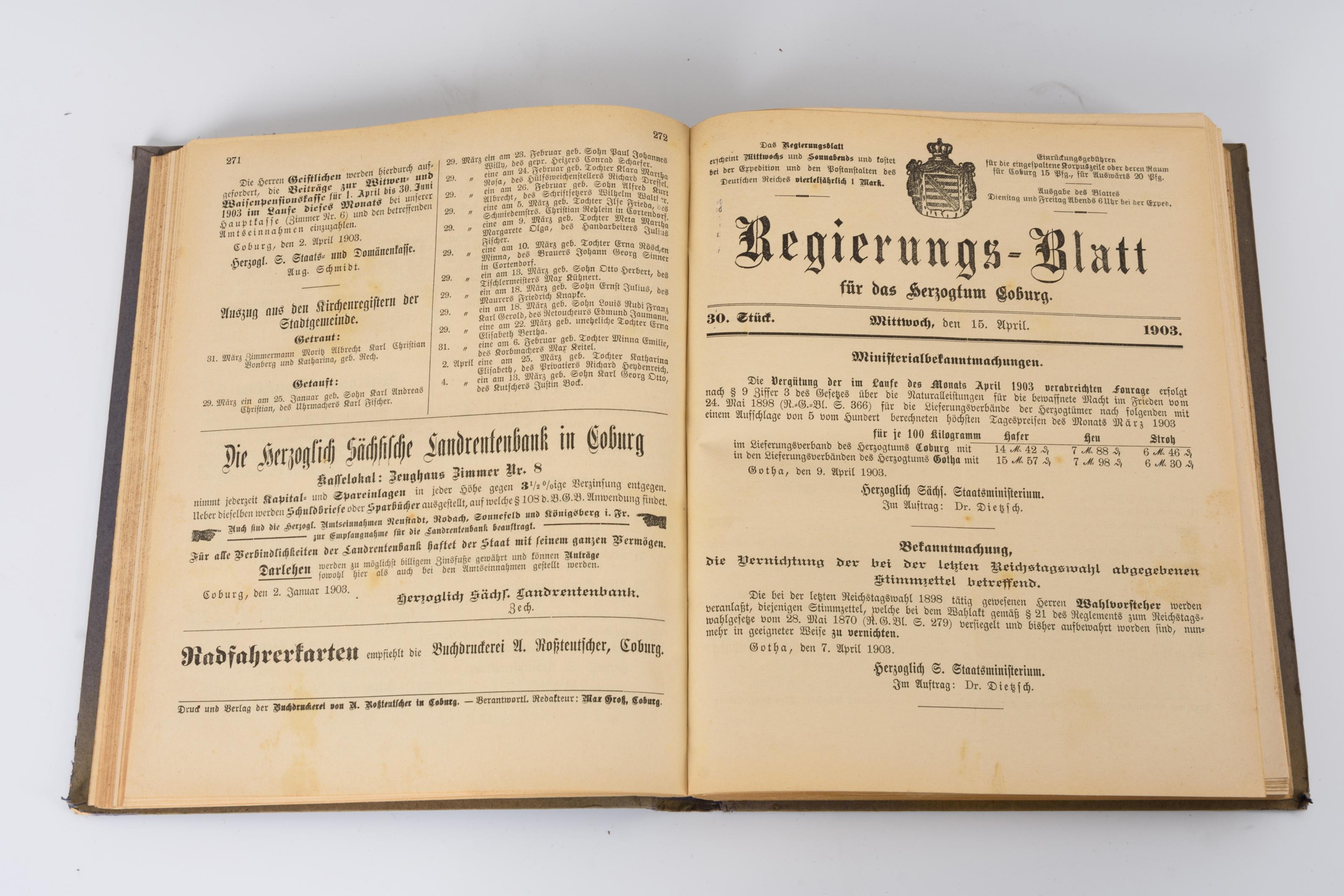 17 Bände "Regierungs-Blatt für das Herzogthum Coburger"