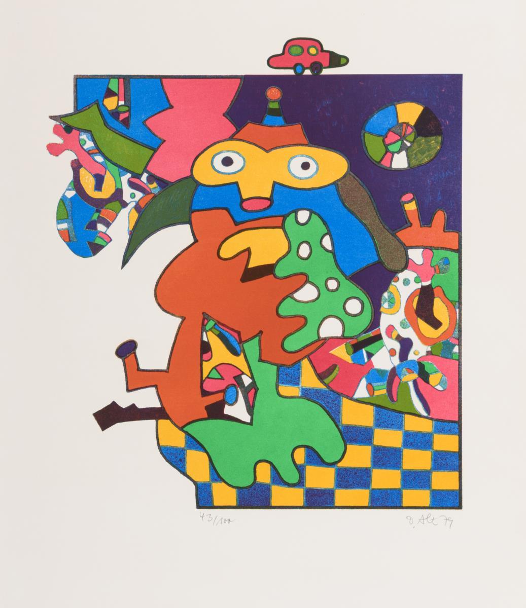 Exemplar: 43/100, Prägestempel "Original Lithographie mh".