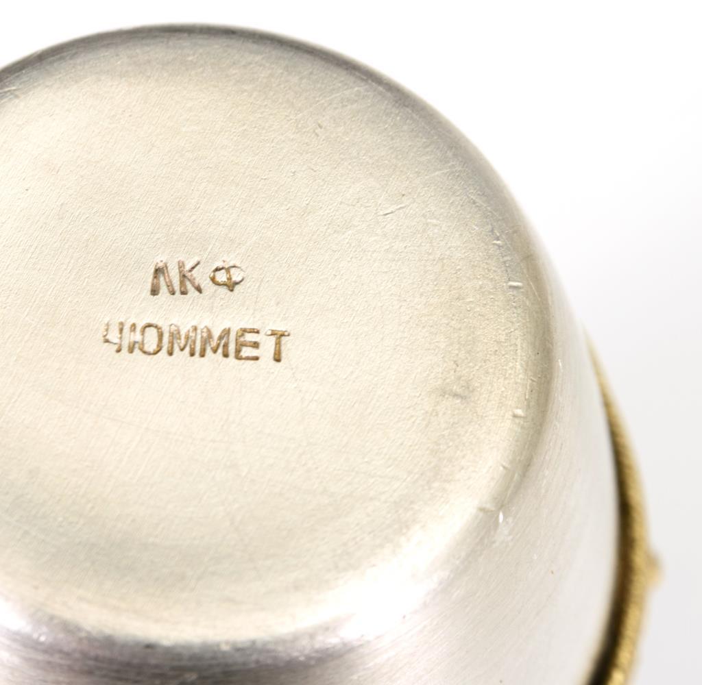 Dekorative Becher mit Filigranzier. Gebrauchsspuren.