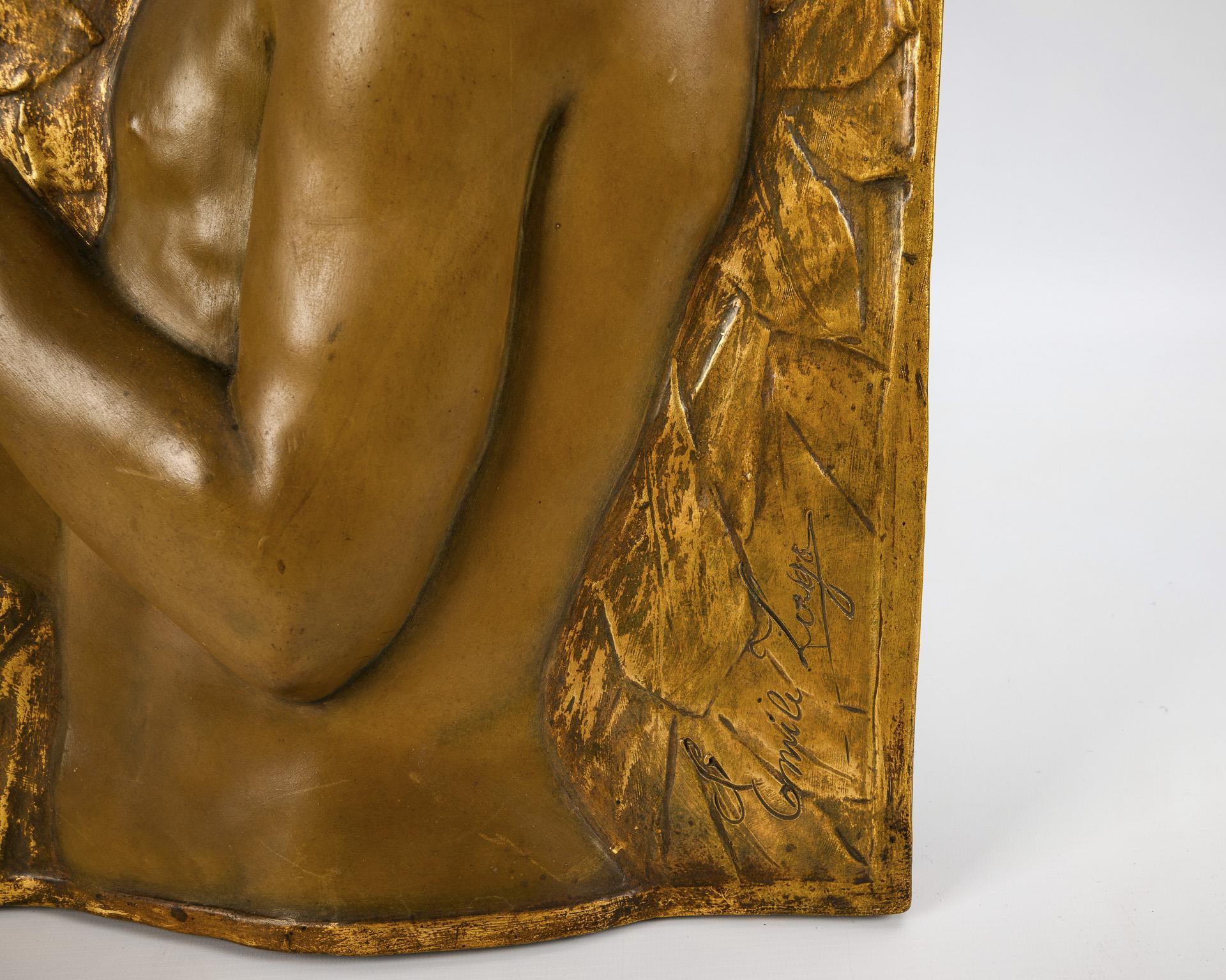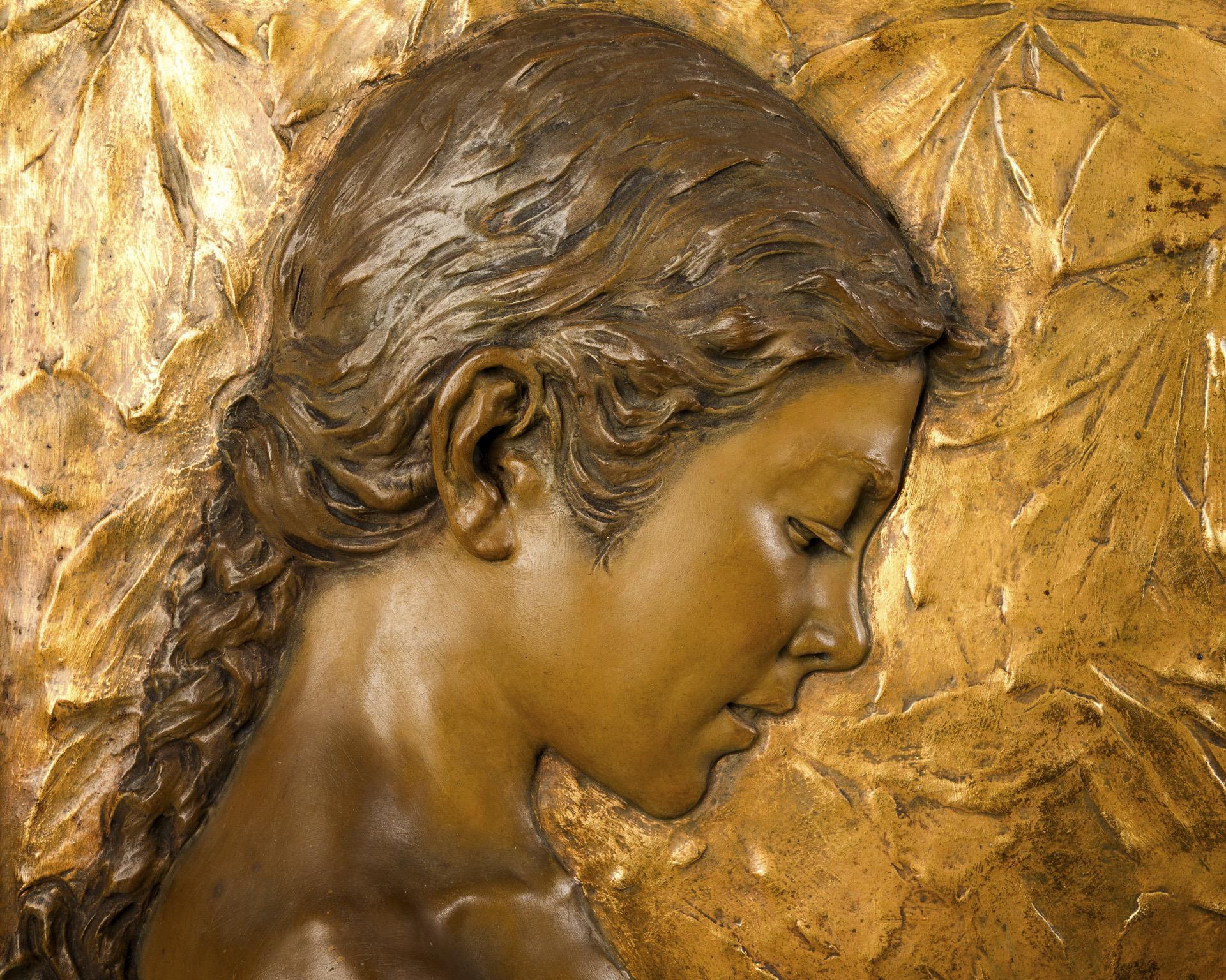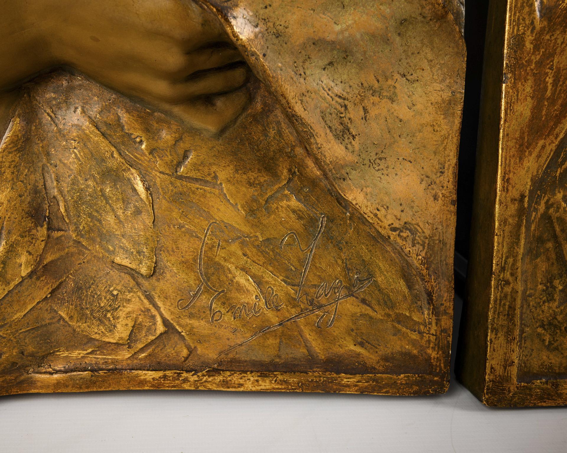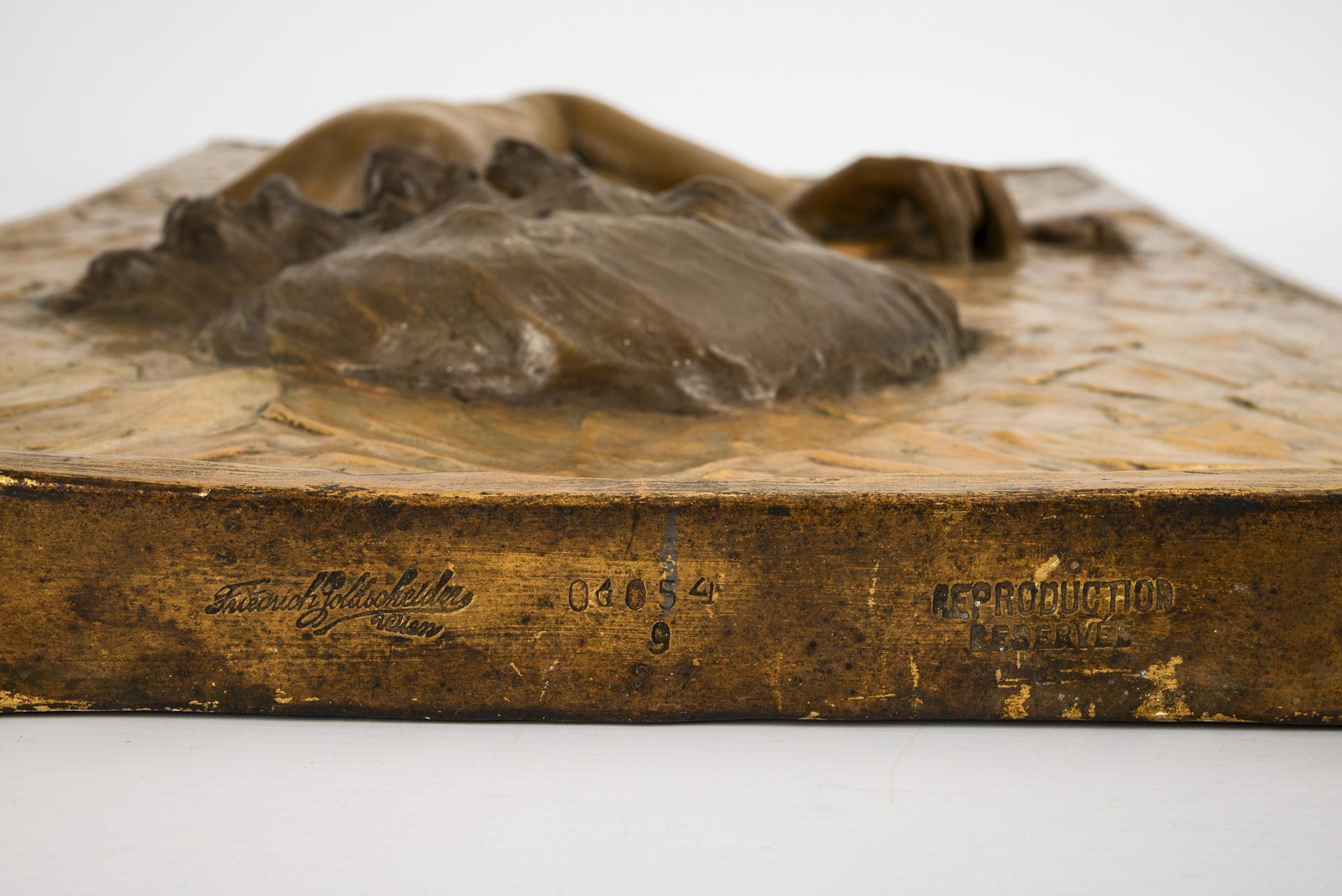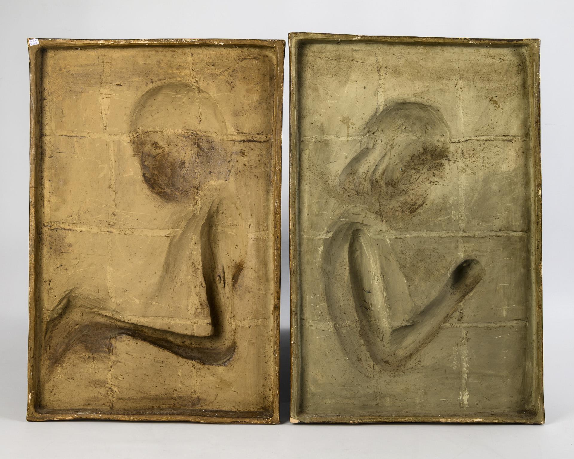 2 Art Nouveau wall relief panels with children's motifs. Viennese manufactory Friedrich Goldscheider.