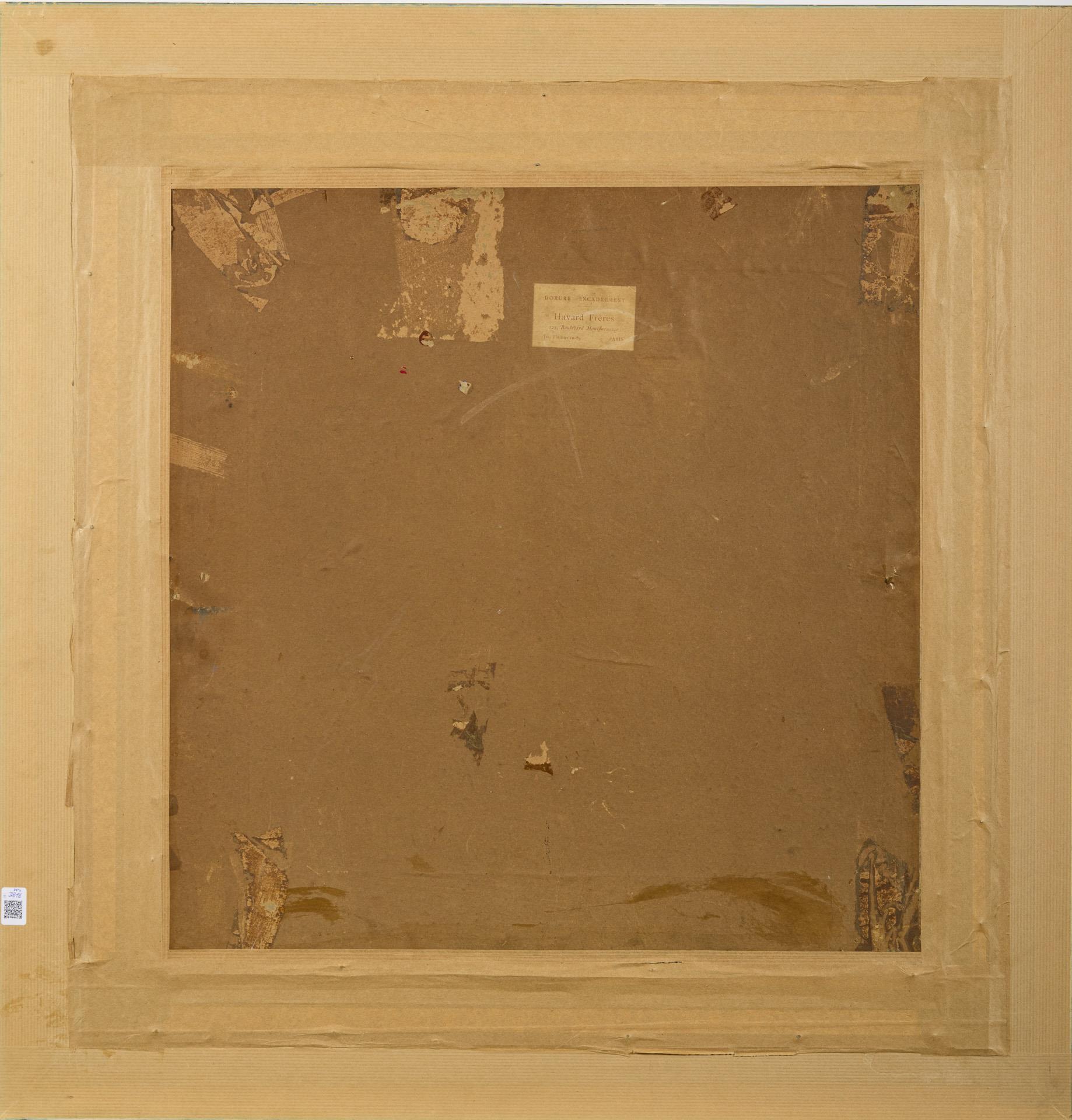 Passe-partout cut-out 46 x 37 cm. Framed & behind glass : 76 x 73 cm (blue-silver frame).