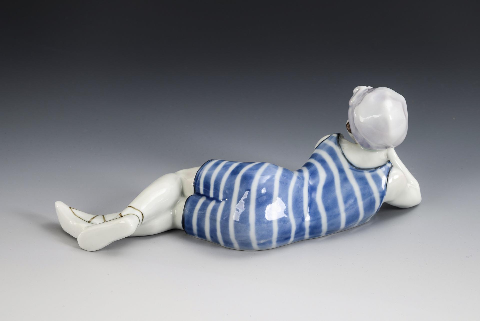 Art Nouveau figure: Reclining lady in bathing costume. ENS.