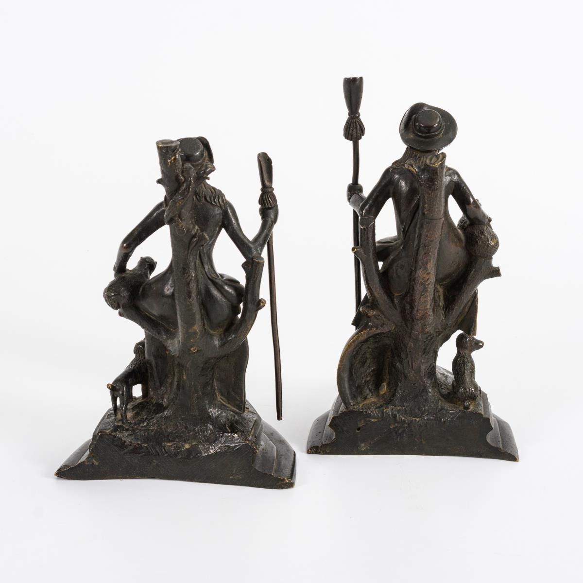 2 Bronze-Buchstützen als Schäferpaar