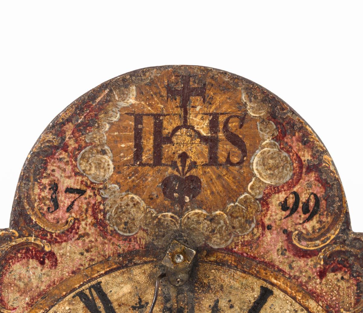 Barocke Schilderuhr mit Kuhschwanzpendel.