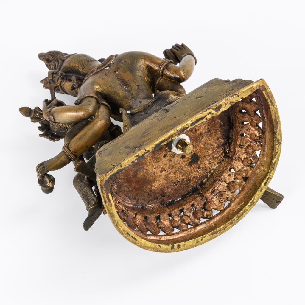 Fein ziselierte Musterung als Bekleidung. Sockel hinten abgeflacht und durchbrochen gearbeitet.