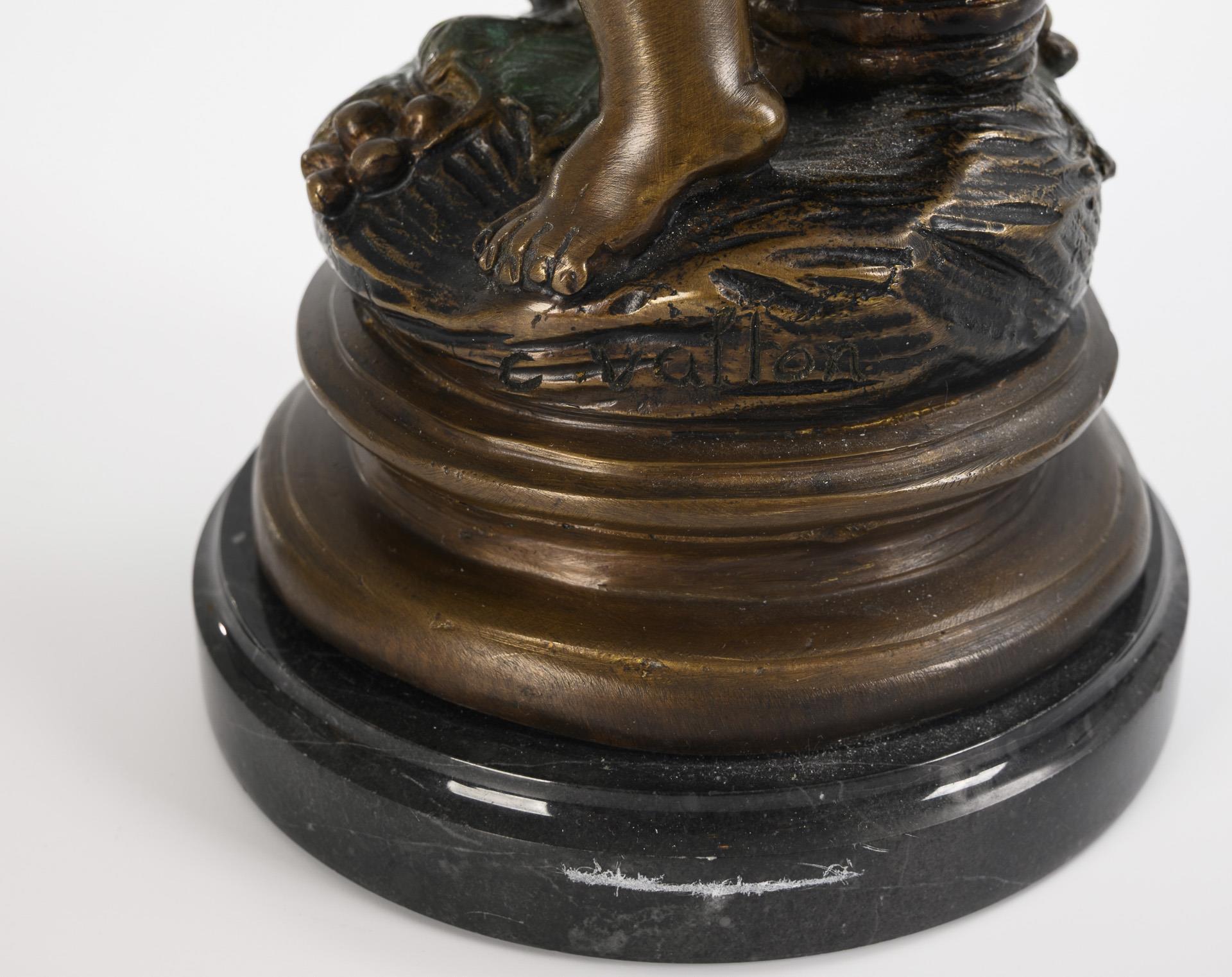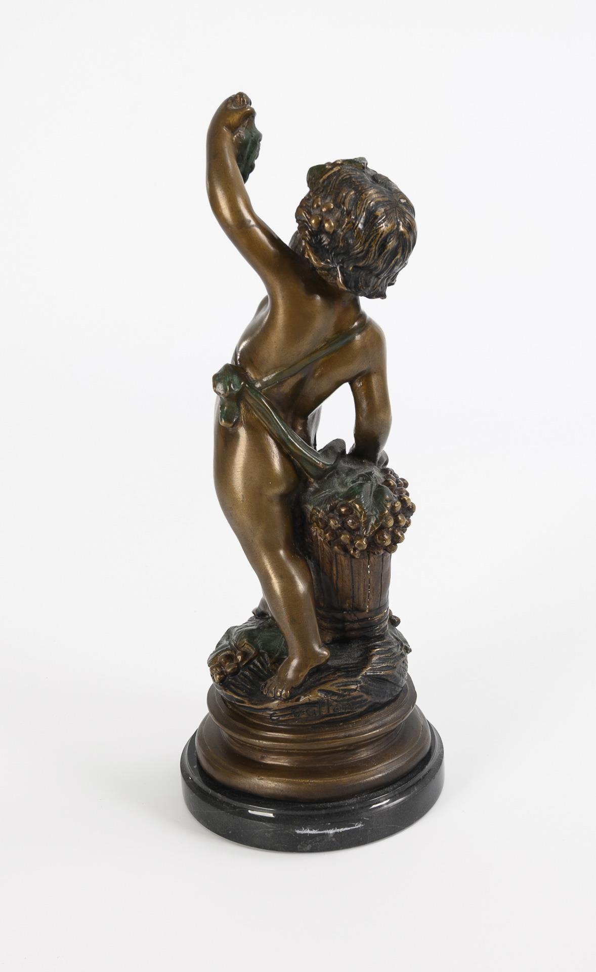 Recast of the Bacchus boy holding up a bunch of grapes. Minor casting defects to the bronze plinth.