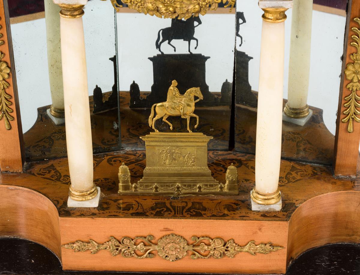 Biedermeier-Portaluhr mit antikisierendem Reiterstandbild.