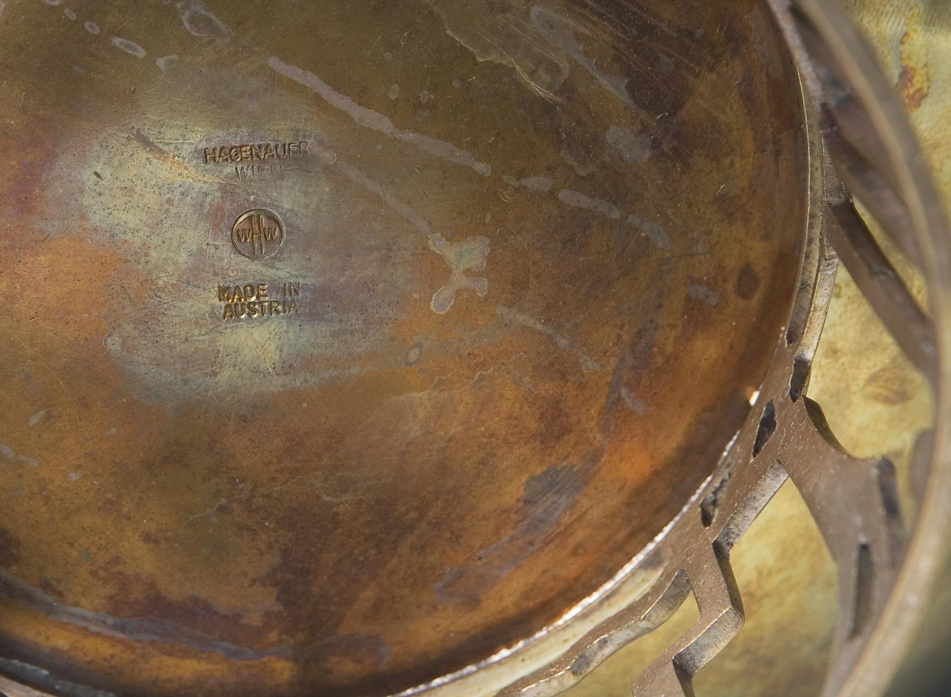 Stand foot; open-worked. Company mark WHW in a circle, word mark Hagenauer Vienna, Made in Austria. Signs of use.