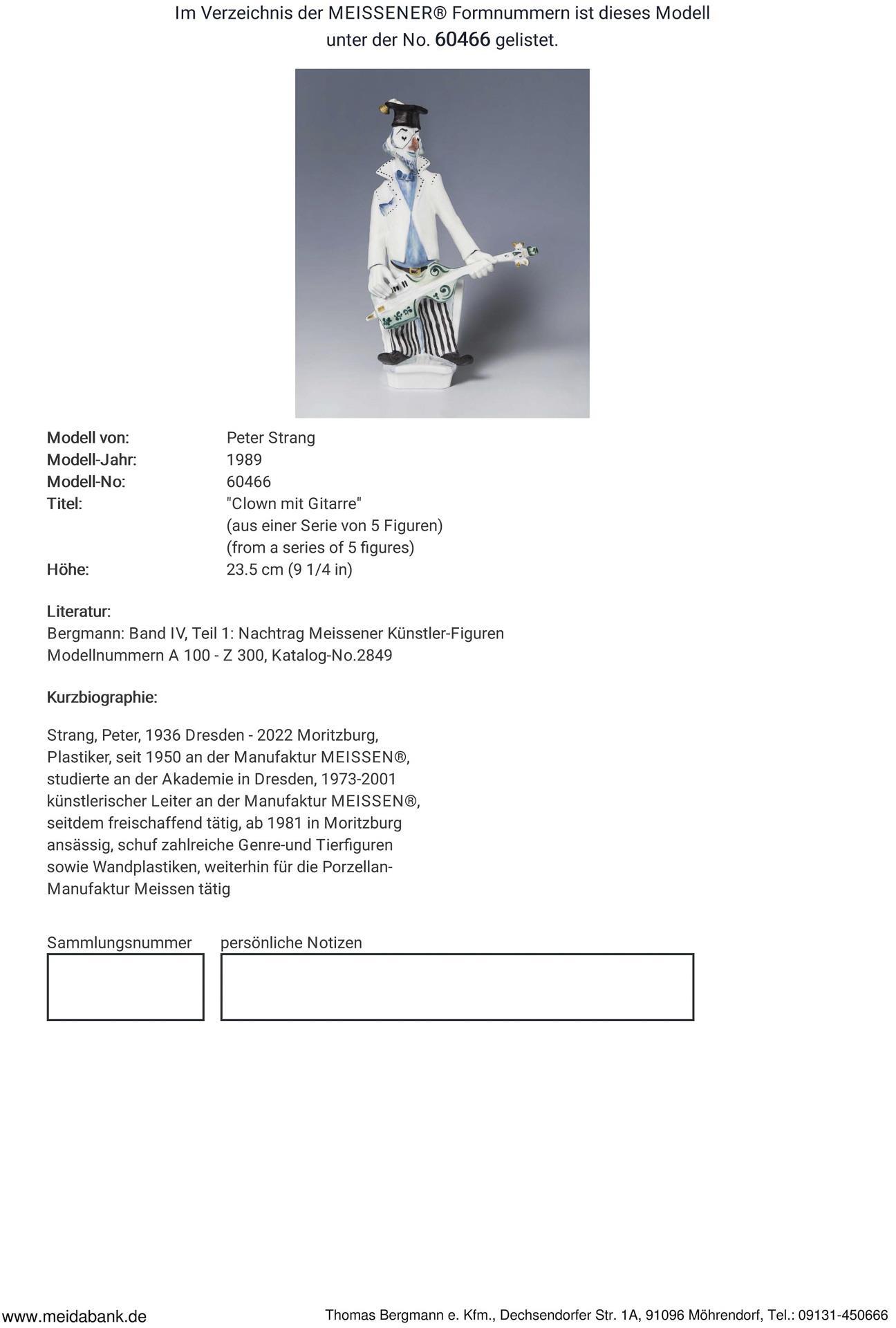 * Strang, sculptor, studied at the academy in Dresden. Worked at the Meissen manufactory from 1950, 1973-2001 artistic director, since then freelance. Resident in Moritzburg from 1981, created numerous figures and vessels. Meissen manufactory price: 3490 euros.