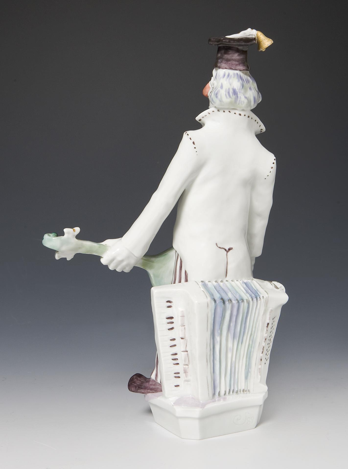 Figure from the large clown band: clown with guitar. Meissen.