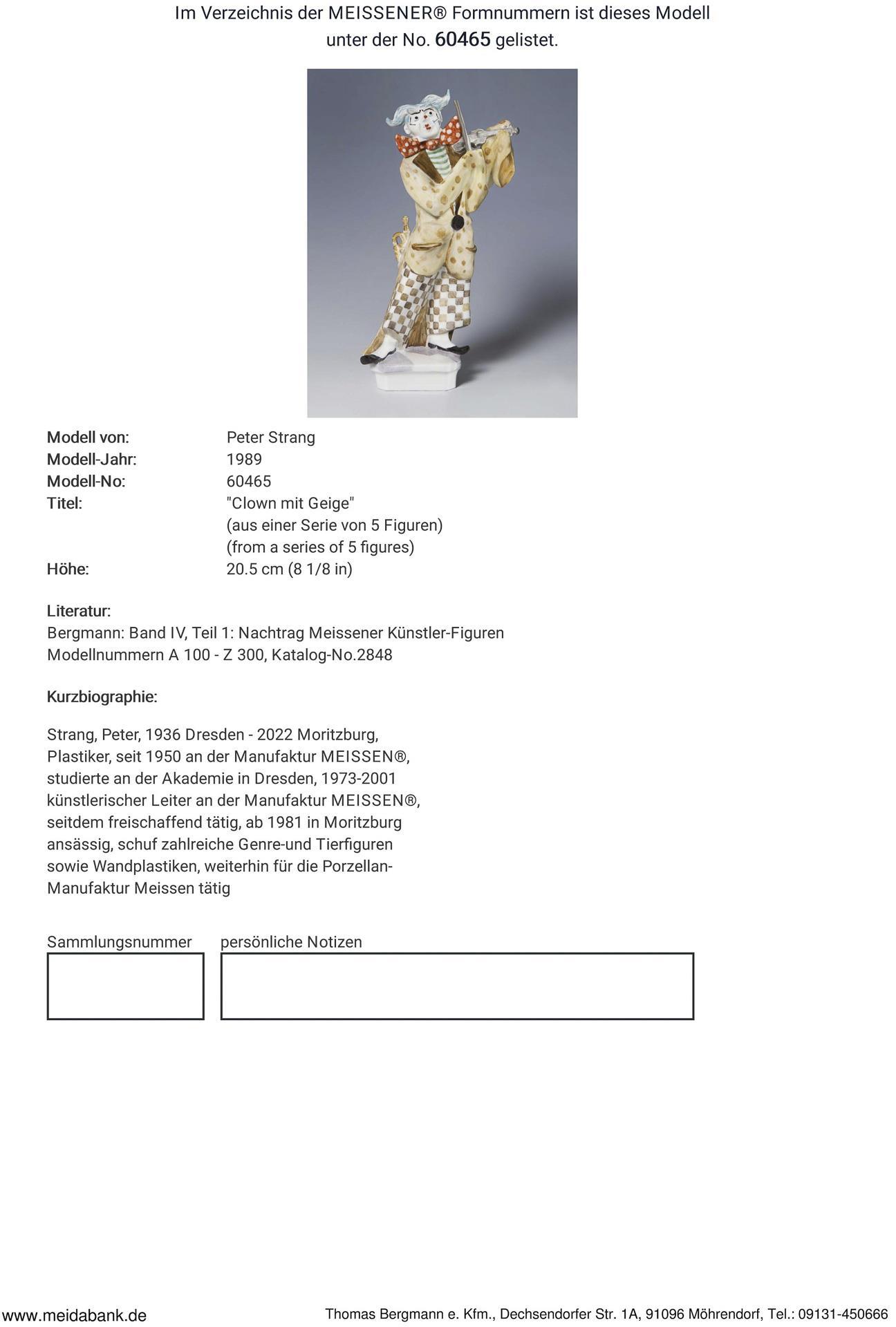 * Strang, sculptor, studied at the academy in Dresden. Worked at the Meissen manufactory from 1950, 1973-2001 artistic director, since then freelance. Resident in Moritzburg since 1981, created numerous figures and vessels. Meissen manufactory price: 3990 euros.