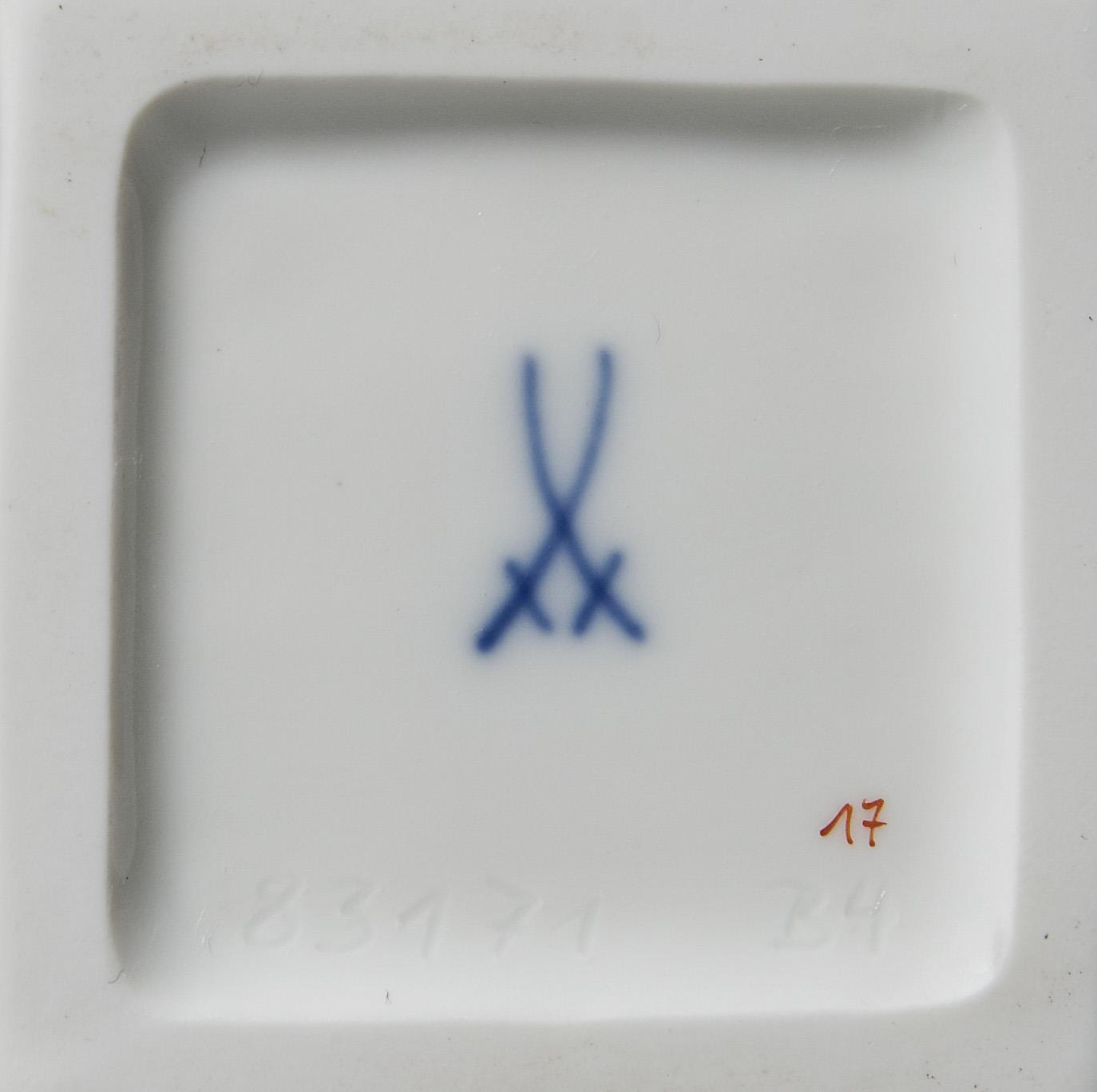 From a series of 3 figures, painted in color, painted gold. Press marks, painter's mark, sword mark, artist's signet.