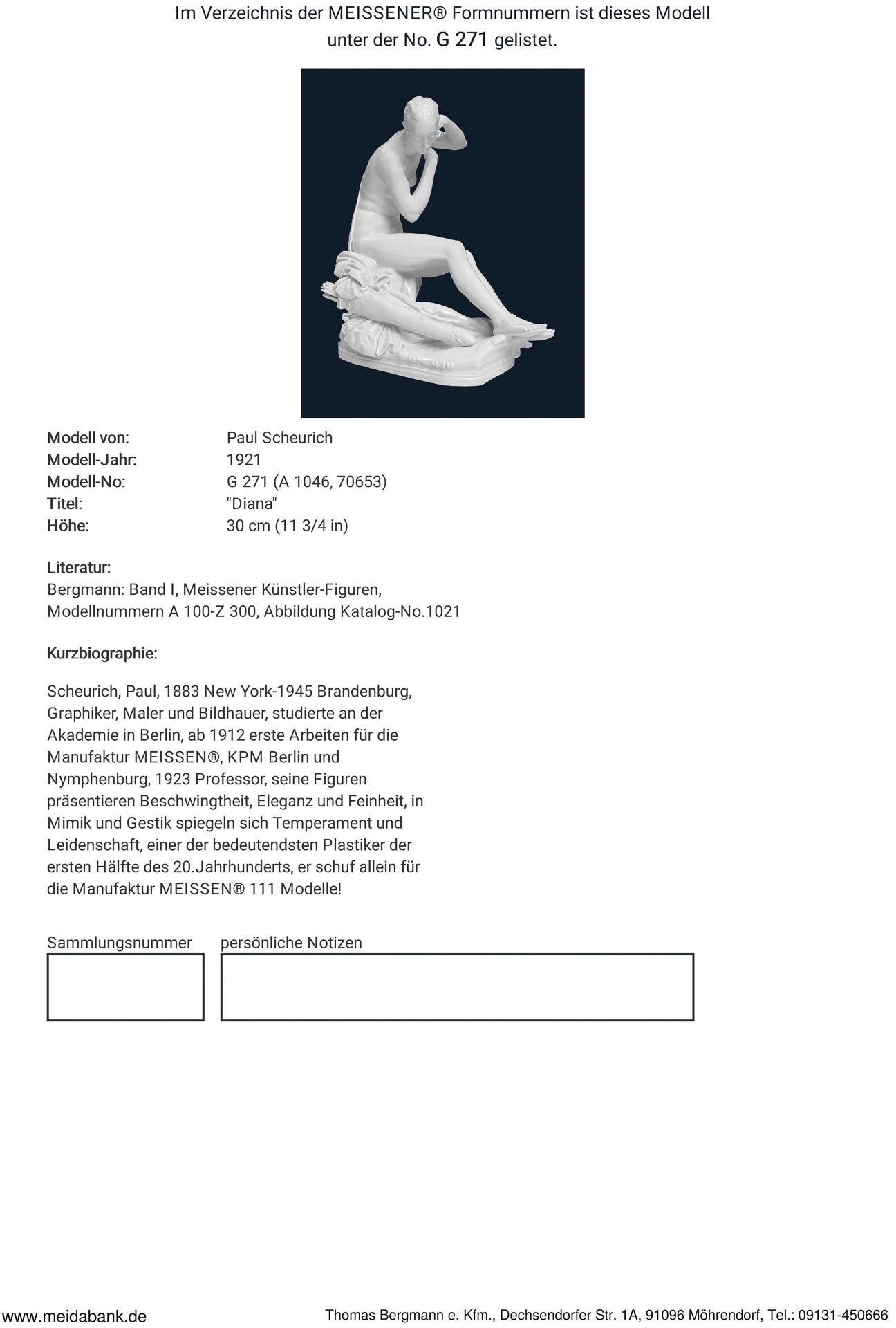 * Scheurich, graphic artist, painter and sculptor, studied at the Academy in Berlin, from 1912 first works for Meissen, the Schwarzburger Werkstätten, KPM Berlin and Nymphenburg * Meissen manufactory price: 4690,- Euro.
