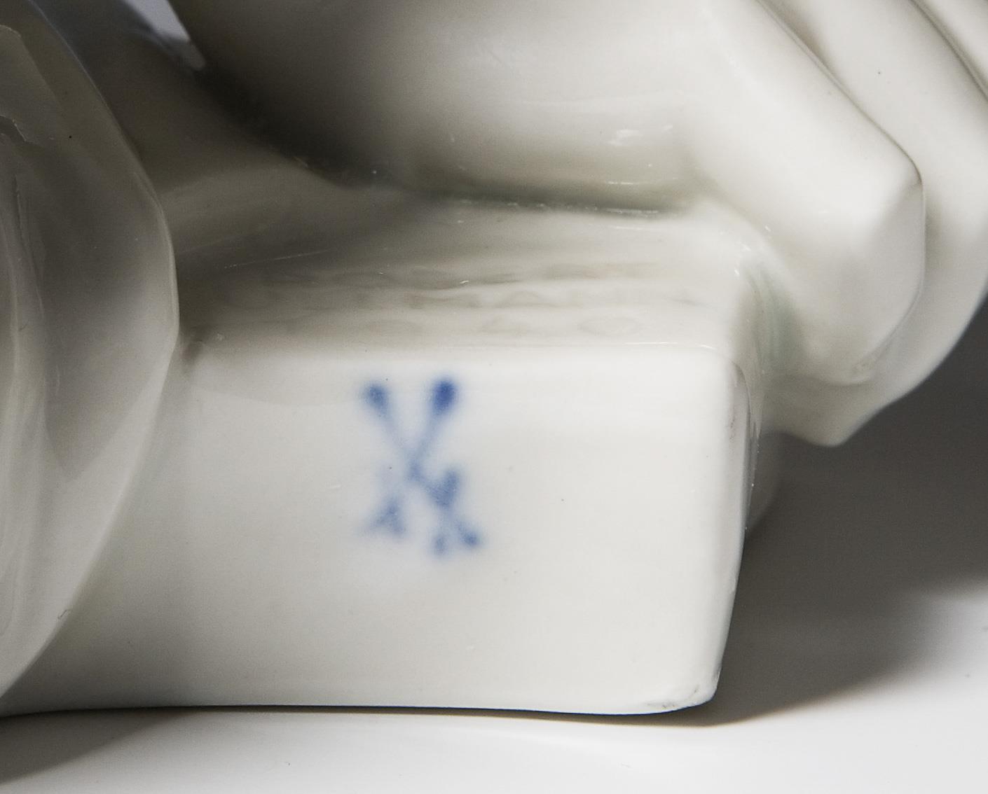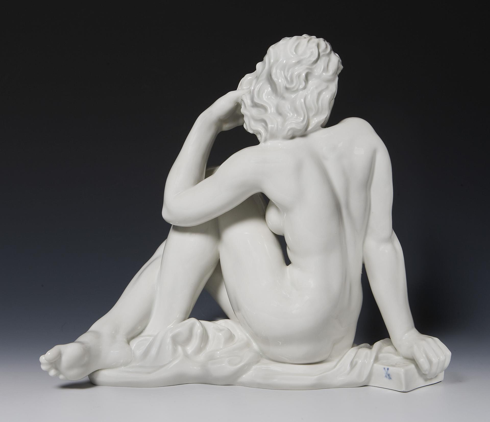 Counterpart to "Schauende", model no. Q 238. White porcelain, incised mark, impressed mark, white mark, sword mark, artist's signet.
