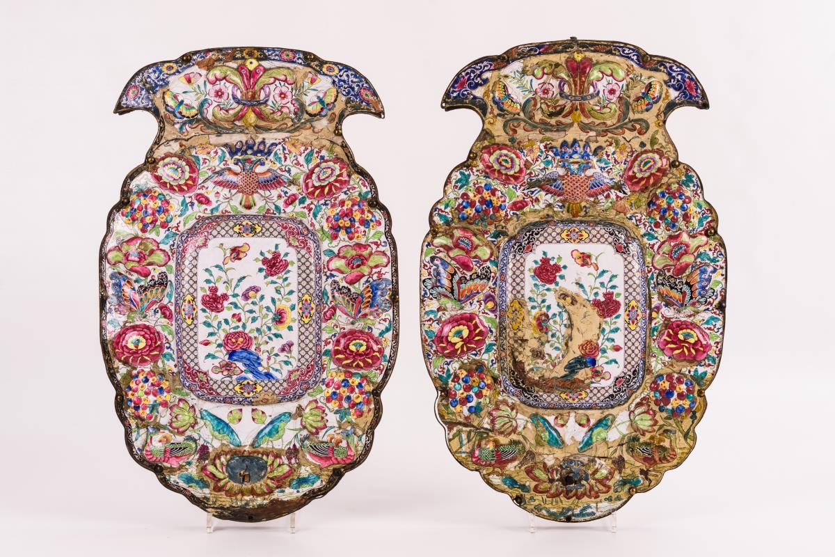 Paar große Blaker mit prächtiger Emailmalerei.