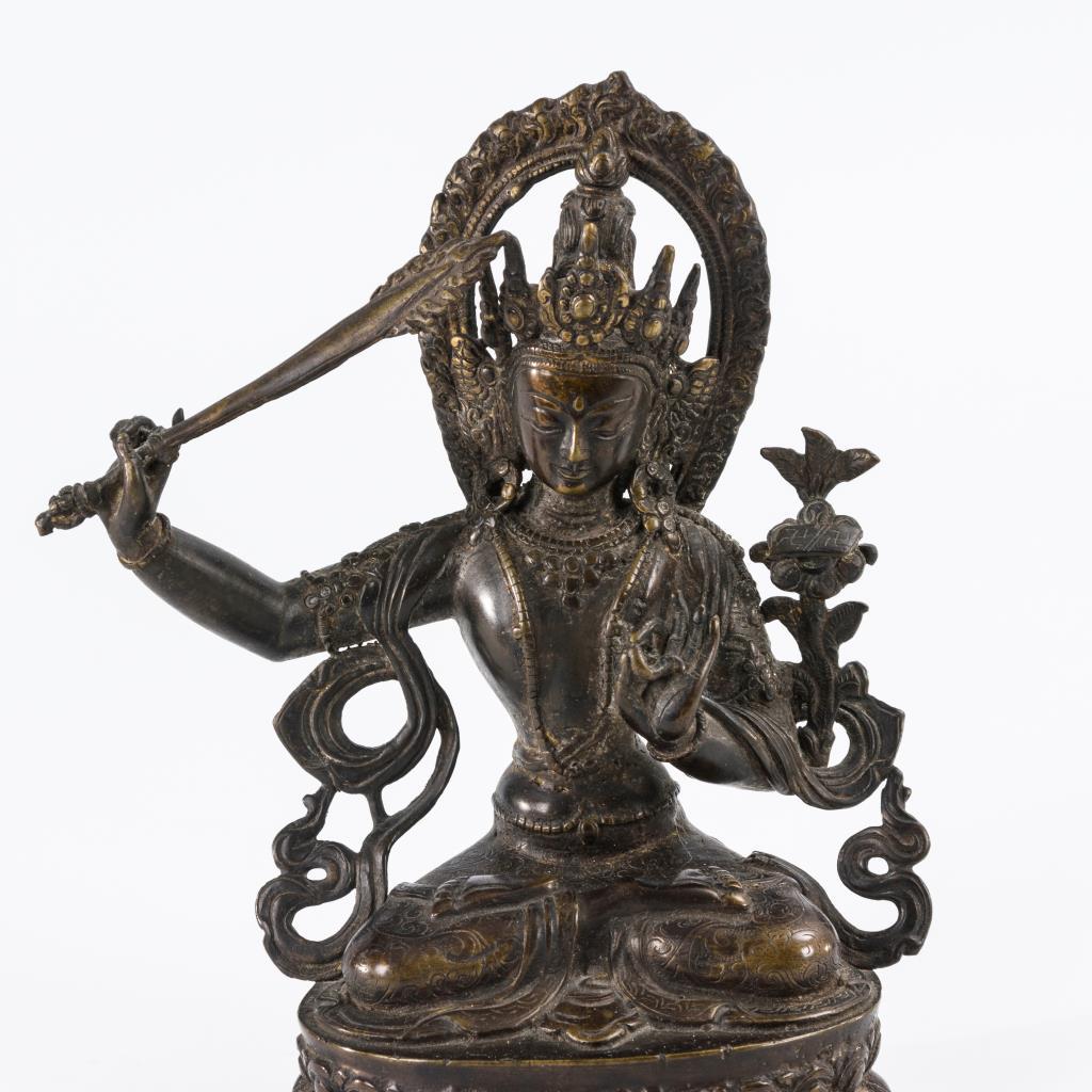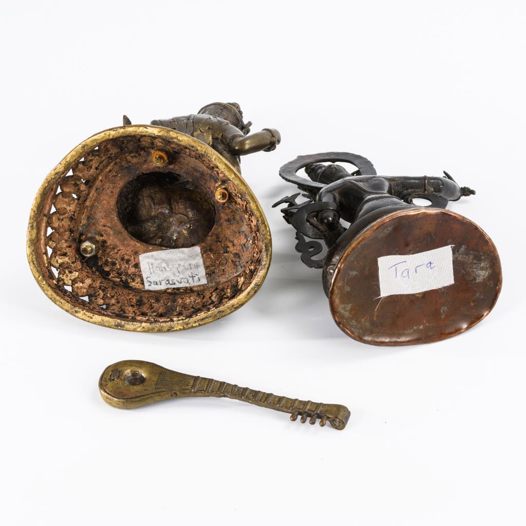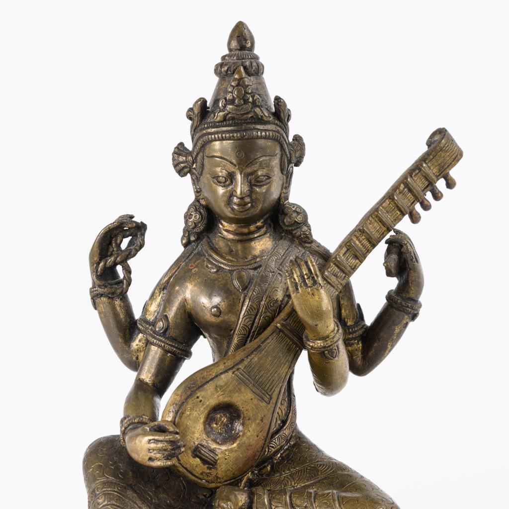 Manjushri mit Feuerschwert, schön ausgearbeitete Figur mit fest montierter Mandorla. / Vierarmige Sarasvati mit einer Laute. Diese ist lose einsteckbar.